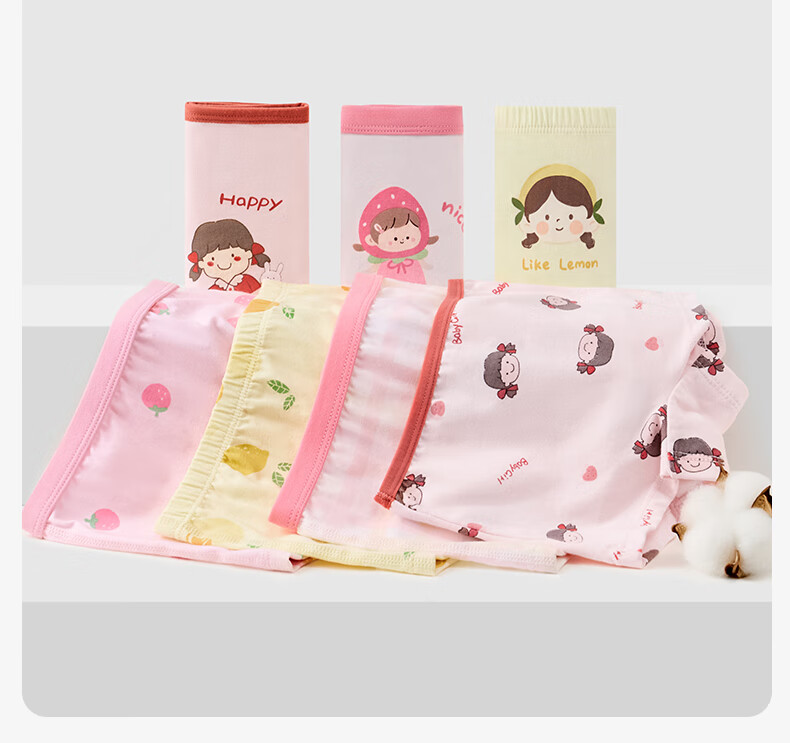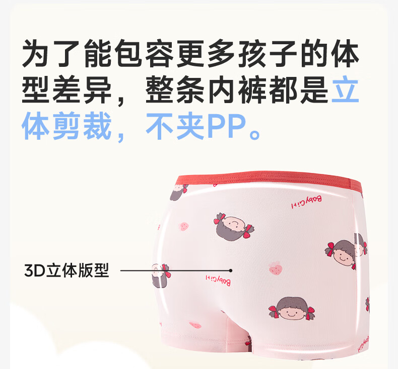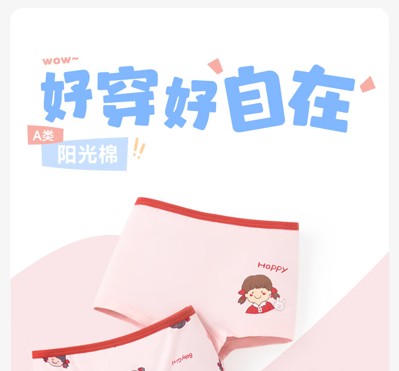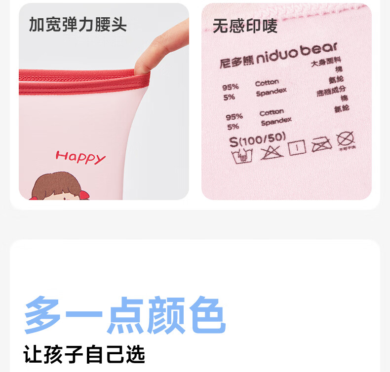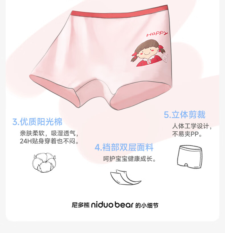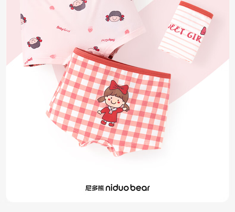 尼多熊儿童内裤女童红内裤中大童A类平角纯棉婴儿不夹pp透气四角裤L码