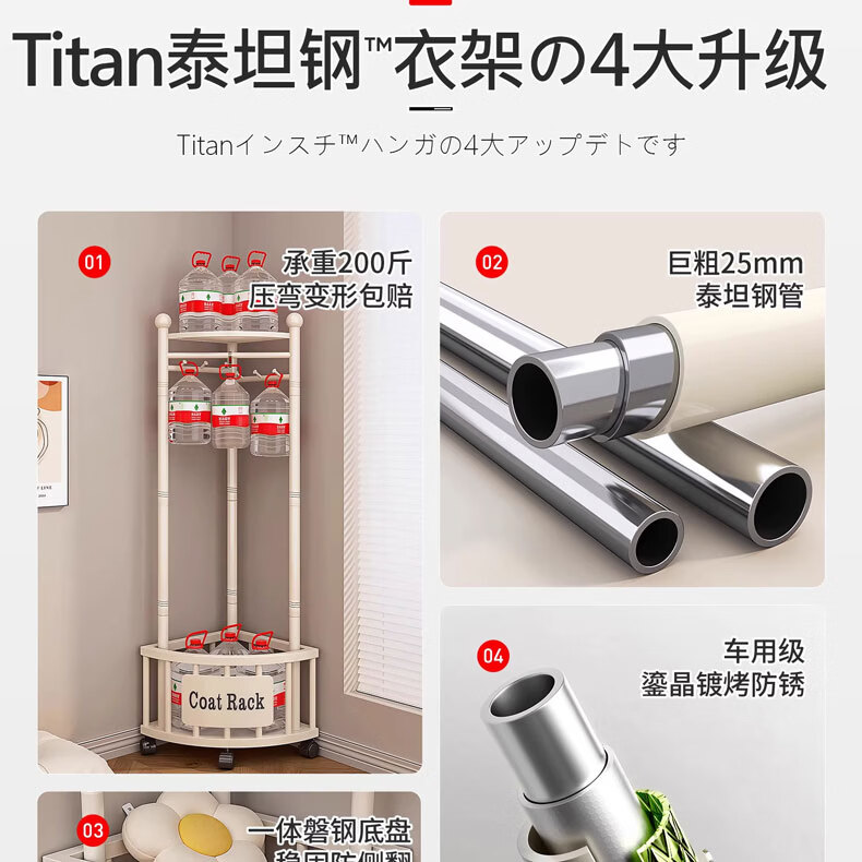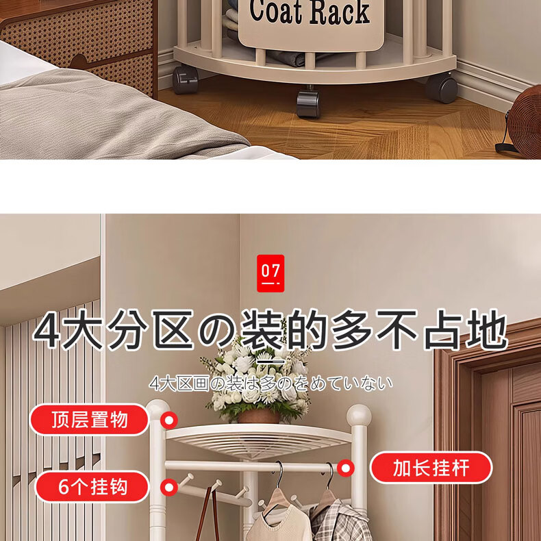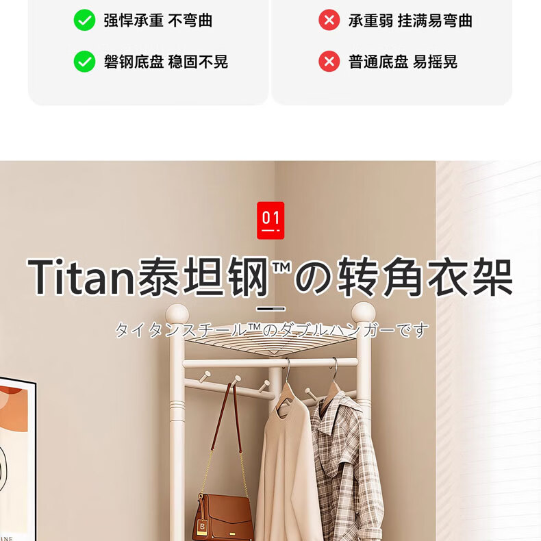 吱凡日本转角衣架落地卧室内家用挂衣架墙角衣服挂架简易晾衣架衣帽架 【字母款】雪釉白
