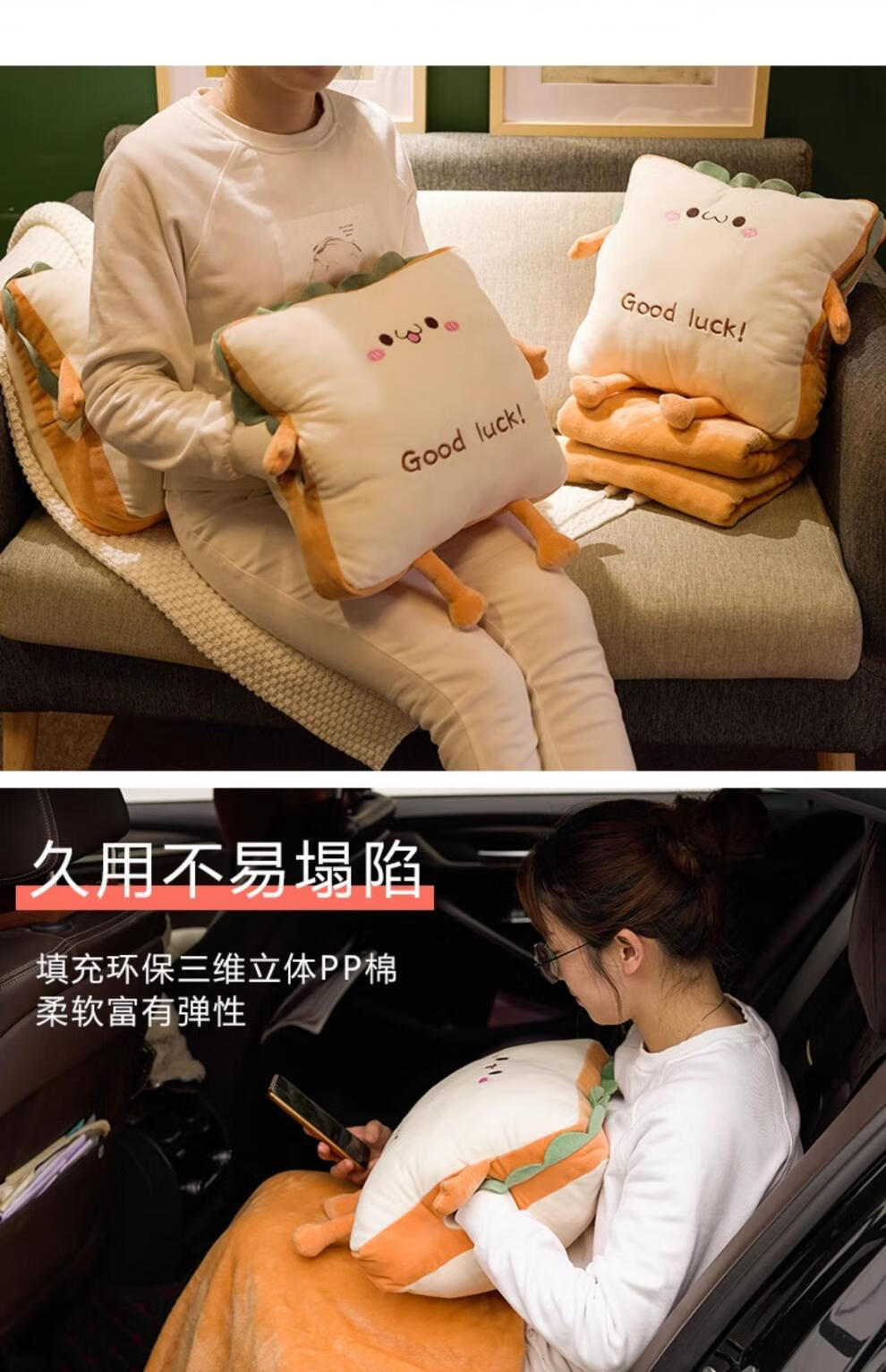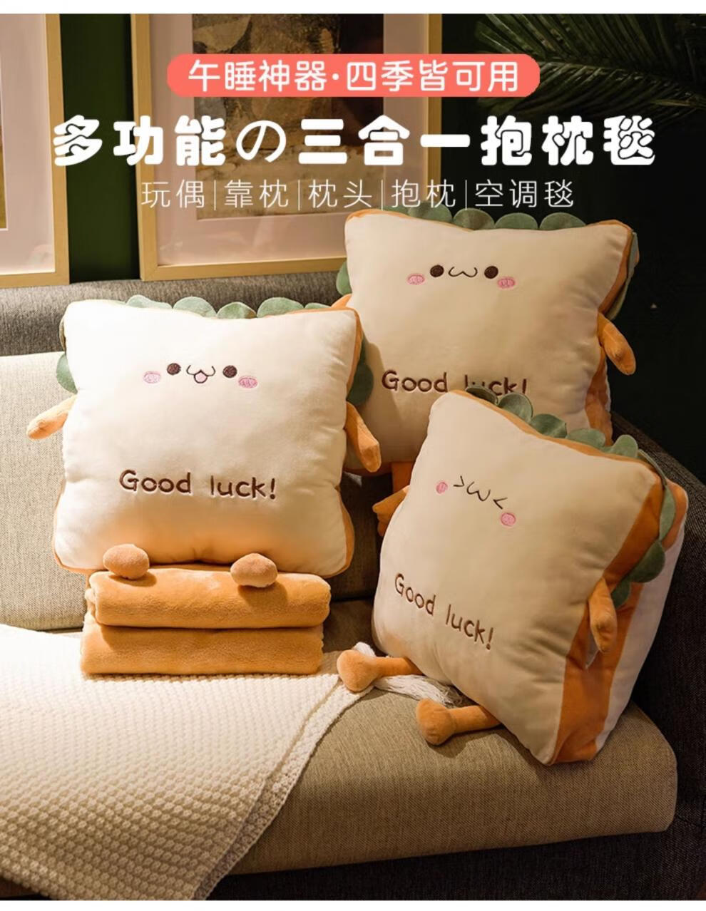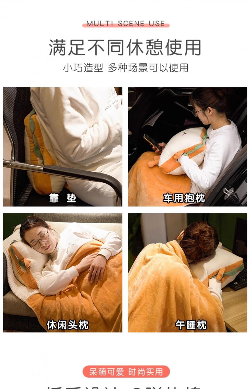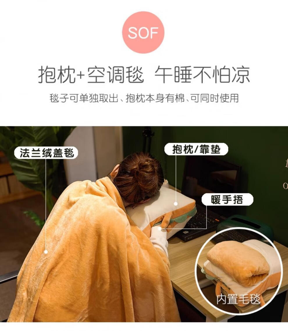 胖東来品质抱枕被子两用新款办公室暖手午睡神器枕头车用睡觉女生 可爱款 100cm*170cm 法兰绒毯子+午睡枕