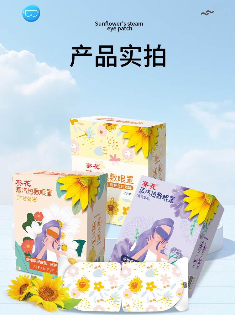 葵花叶黄素蒸汽眼罩热敷缓解眼疲劳眼干眼涩发热敷贴遮光睡眠护眼学生 【混合香型40片】洋甘菊+无香+薰衣草+叶黄素