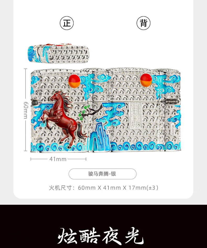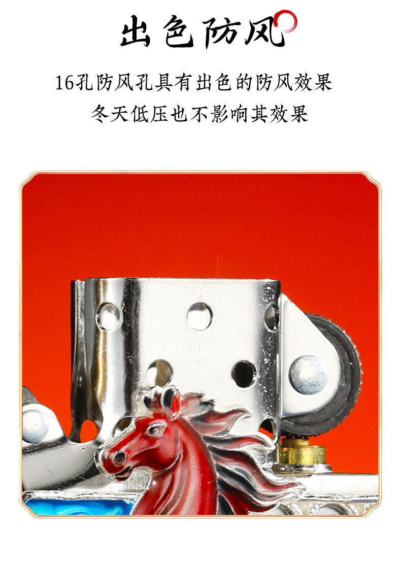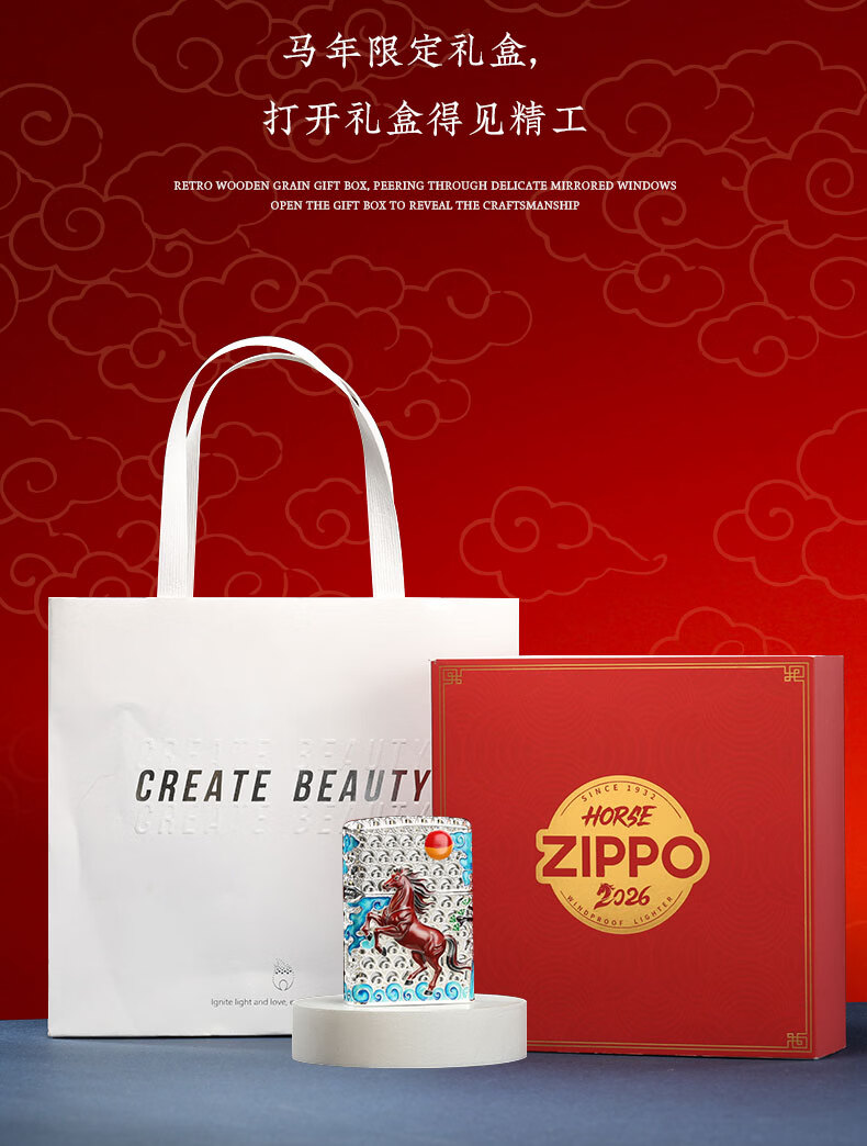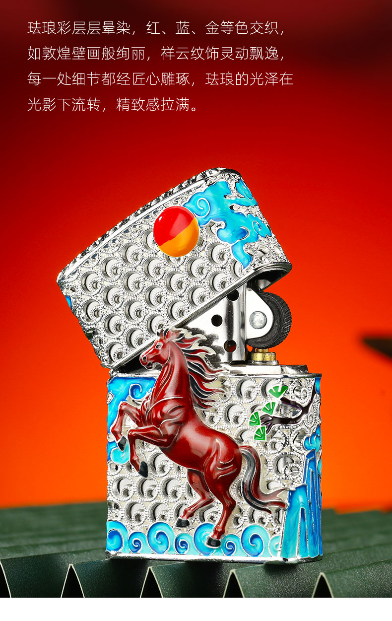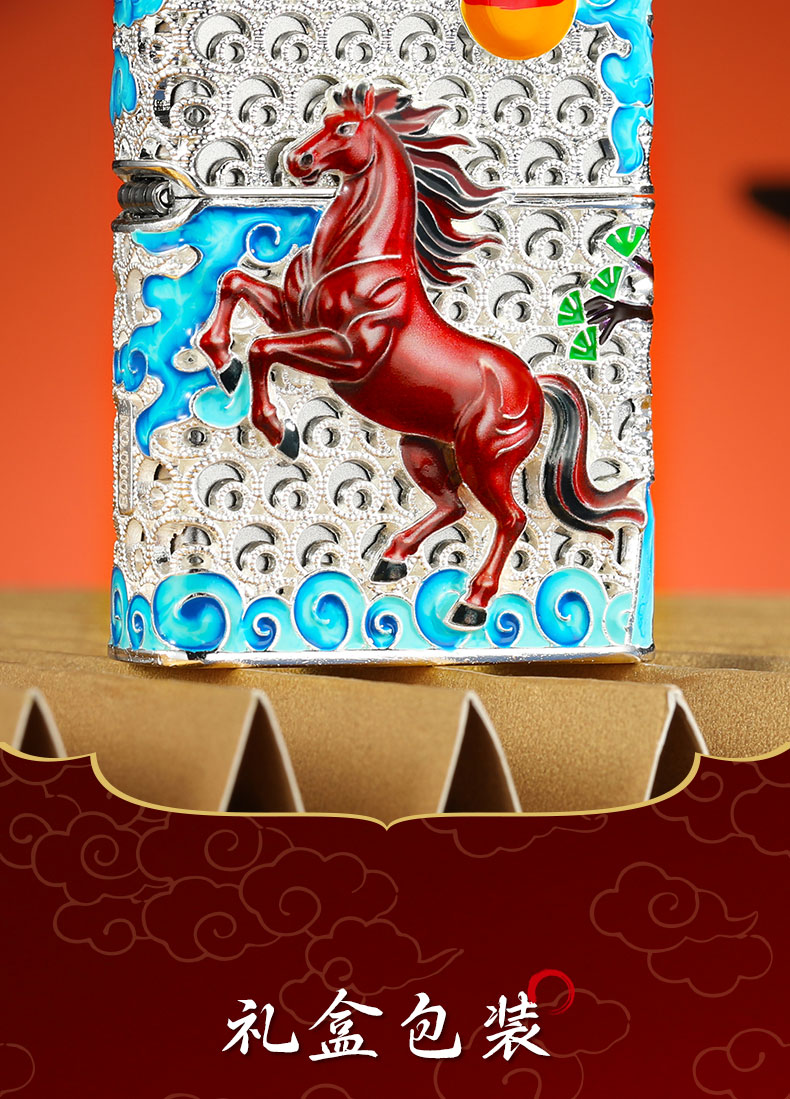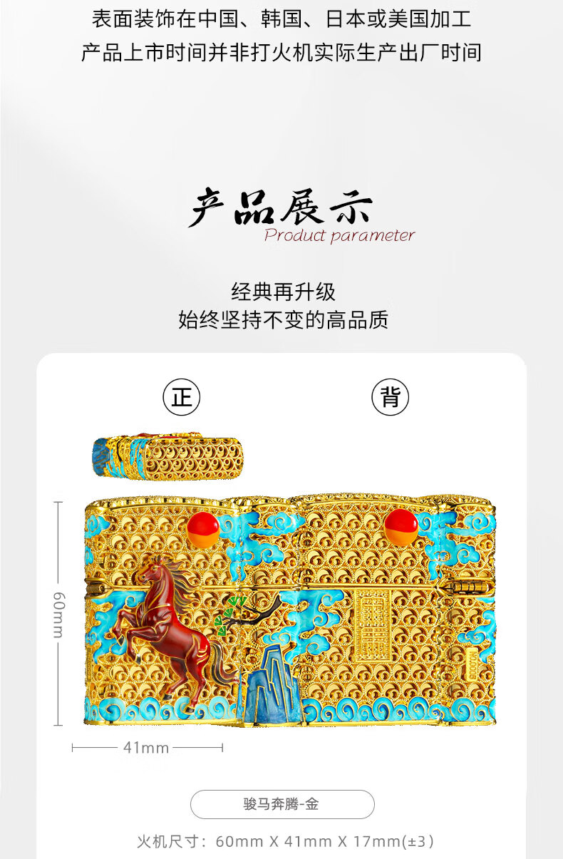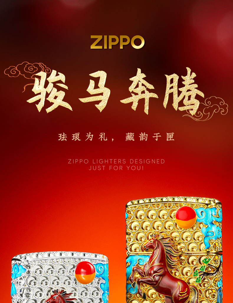 ZIPPO打火机官方正品煤油防风芝宝夜光鸿运珐琅生肖马送男士友生日礼物 重甲鸿运珐琅马金色【马年礼盒套装】