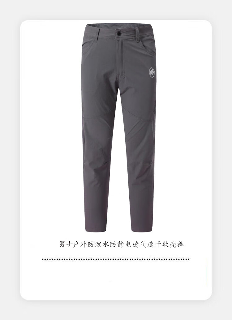 猛犸象男士春秋款透气清凉户外运动软壳裤速干防泼水登山徒步薄款长裤 绿色 3XL