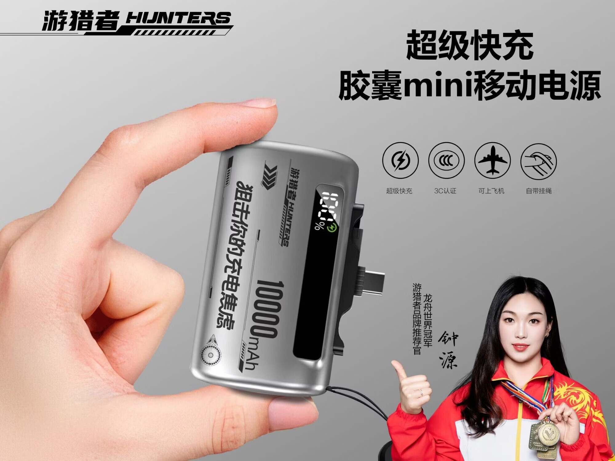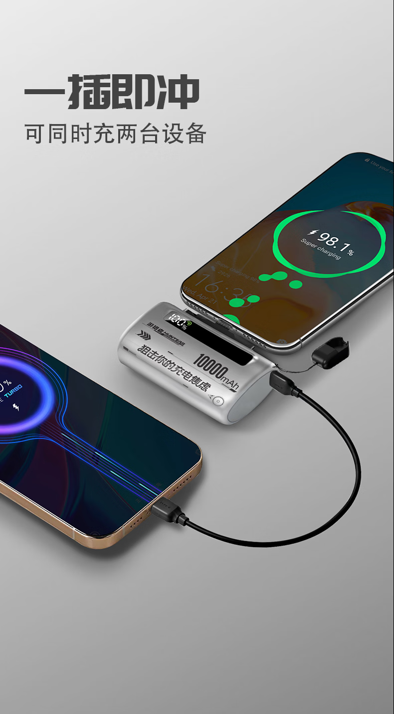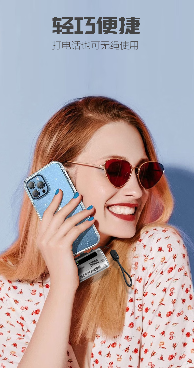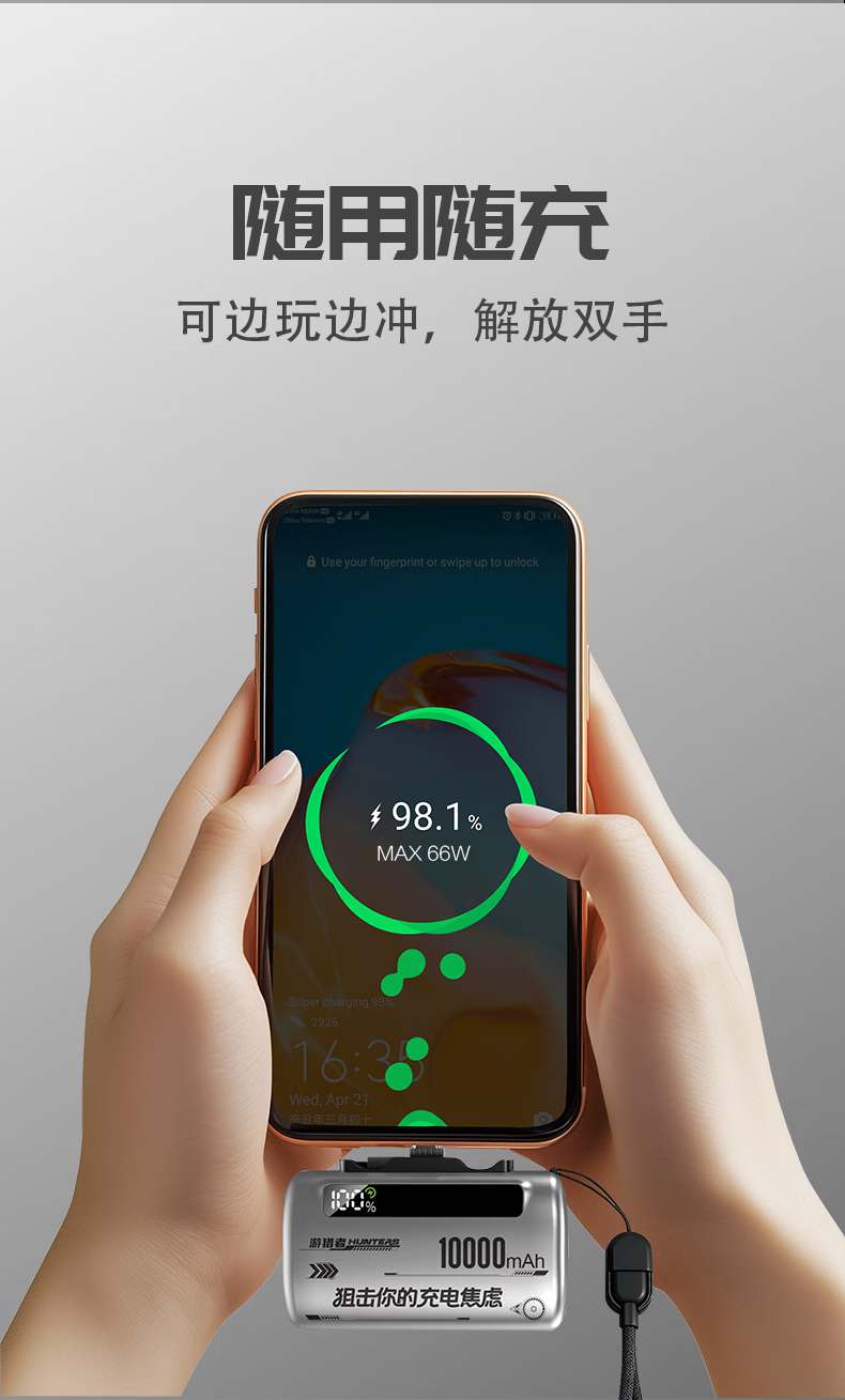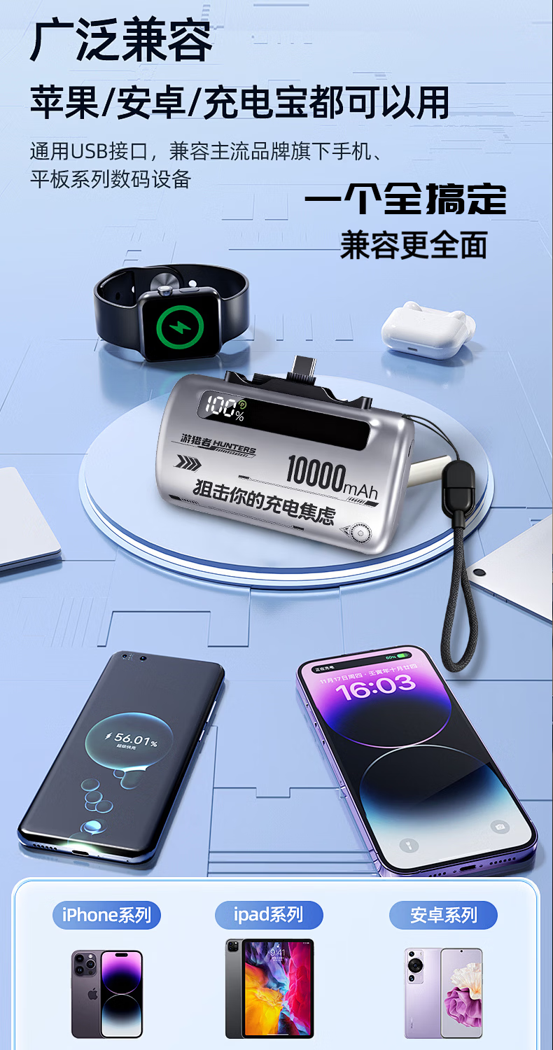 游猎者全协议超级快充自带线1万毫安胶囊充电宝小巧便携移动电源 10000mAh