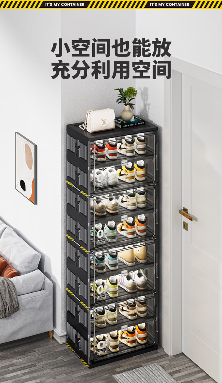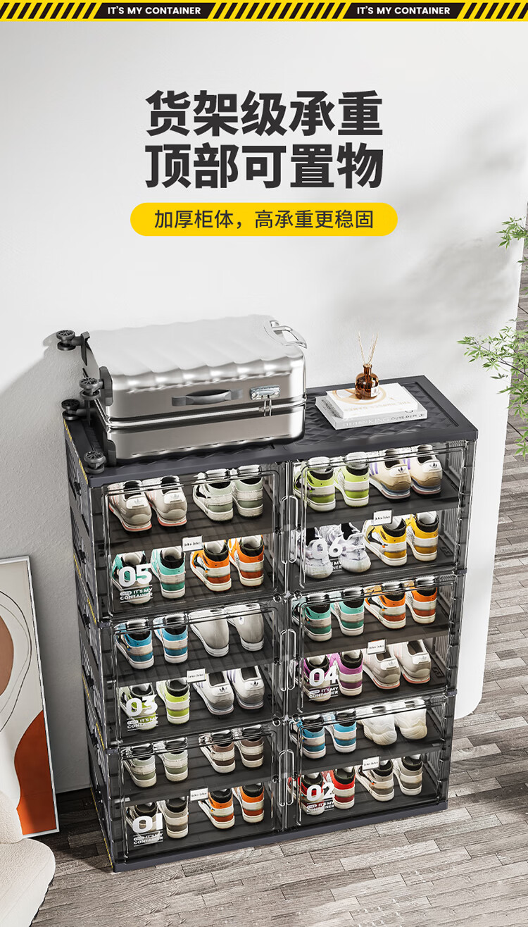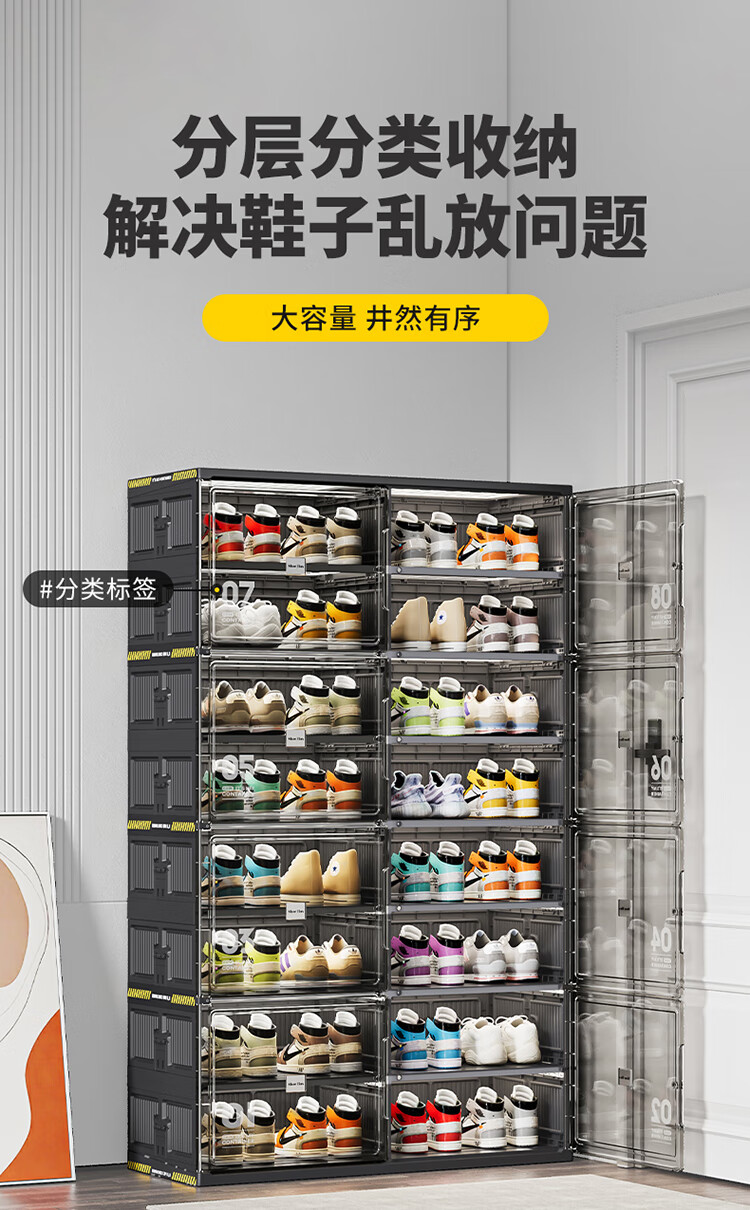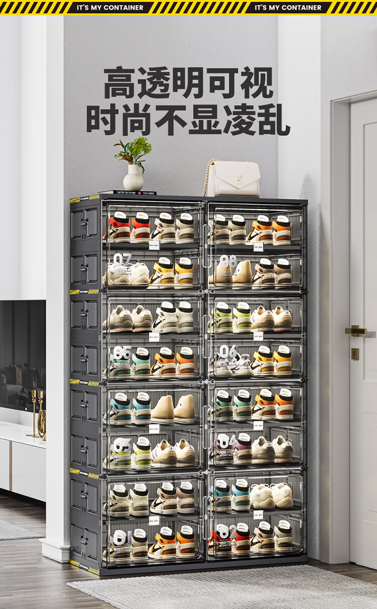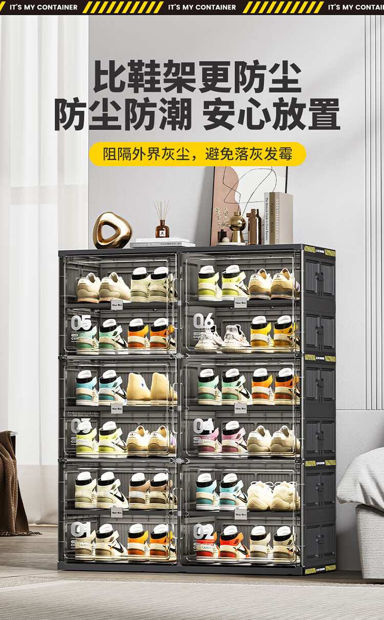 JEKO&JEKO鞋盒鞋柜家用门口鞋架子玄关防尘收纳柜折叠鞋柜入户门收纳鞋盒 黑色2列6层12格(可放24双鞋)