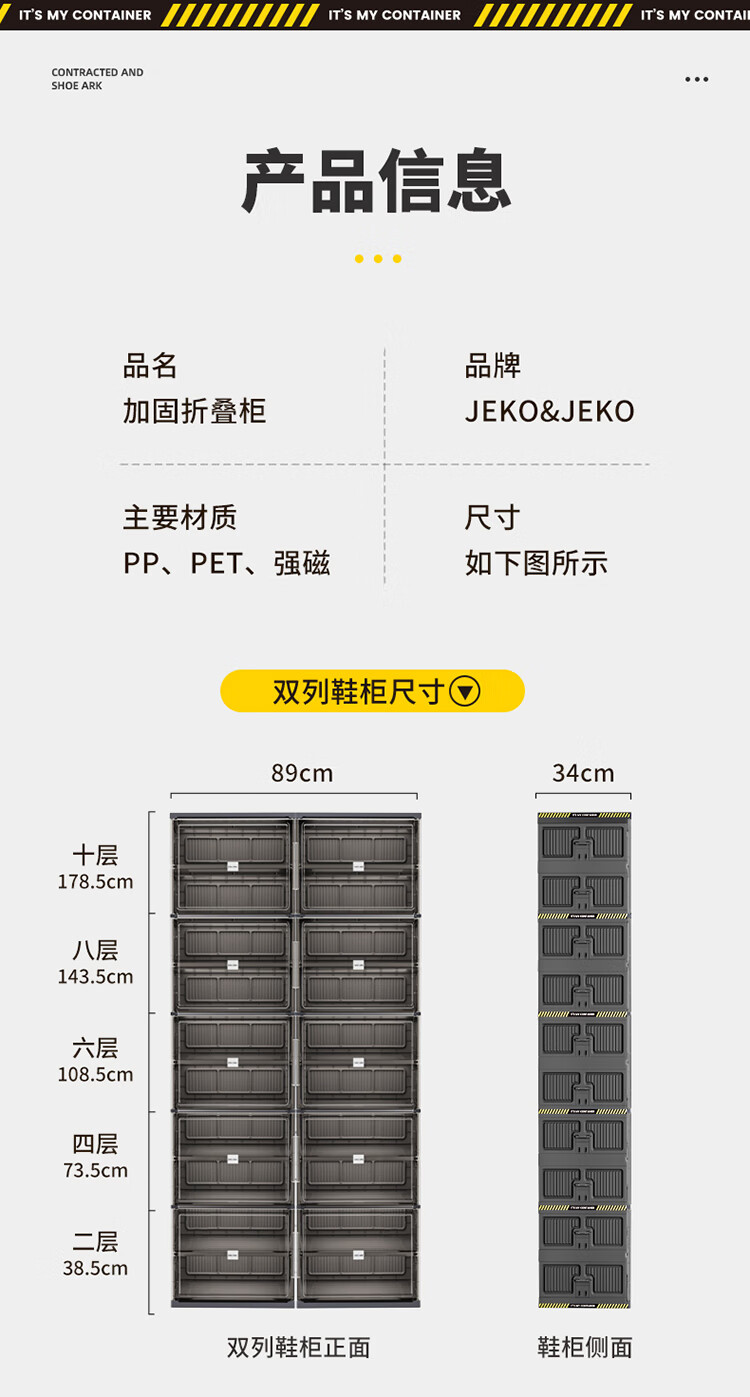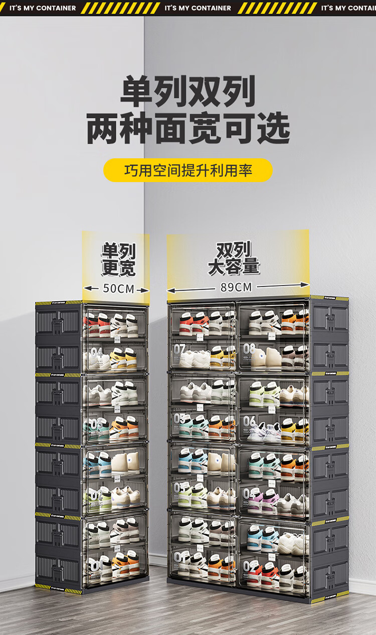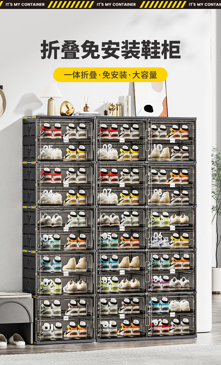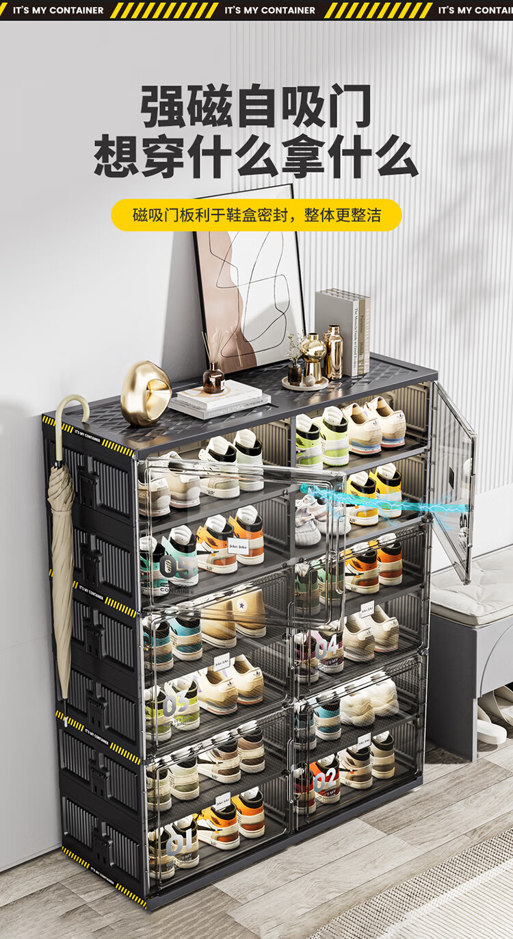 JEKO&JEKO鞋盒鞋柜家用门口鞋架子玄关防尘收纳柜折叠鞋柜入户门收纳鞋盒 黑色2列6层12格(可放24双鞋)
