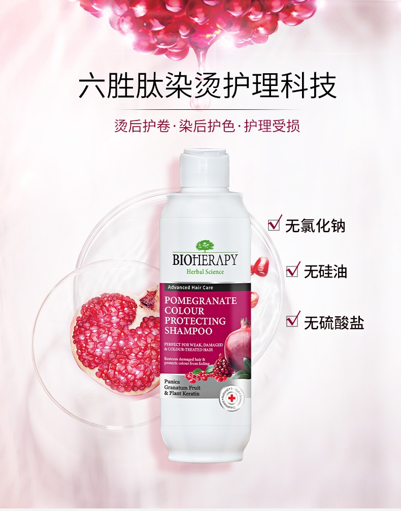 拜洛比六胜肽红石榴洗发水无硅油烫发受损修护发露 红石榴洗发水330ml