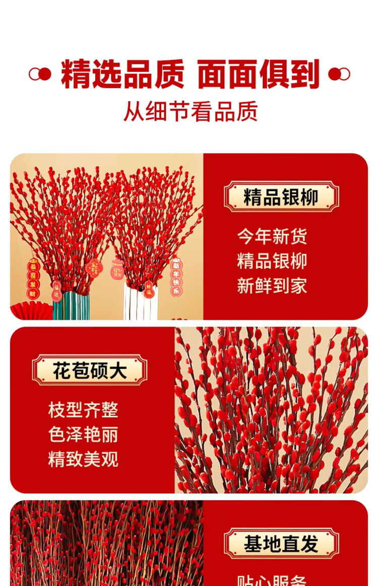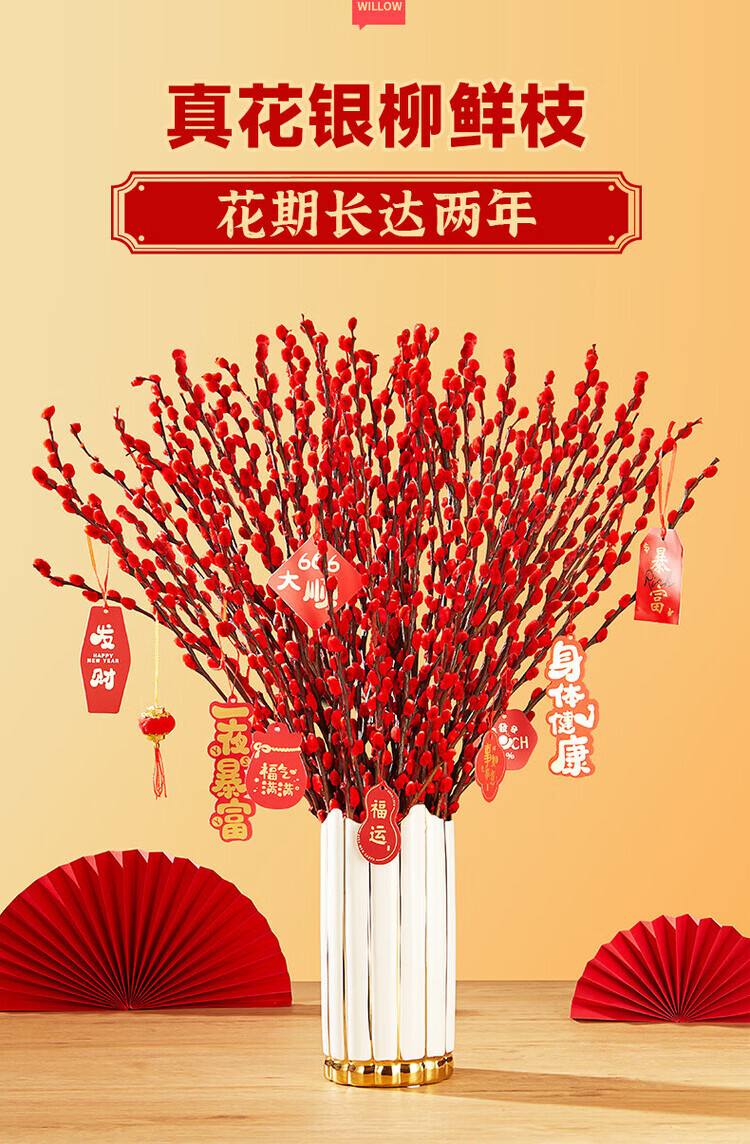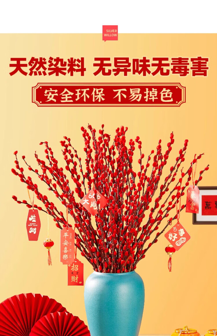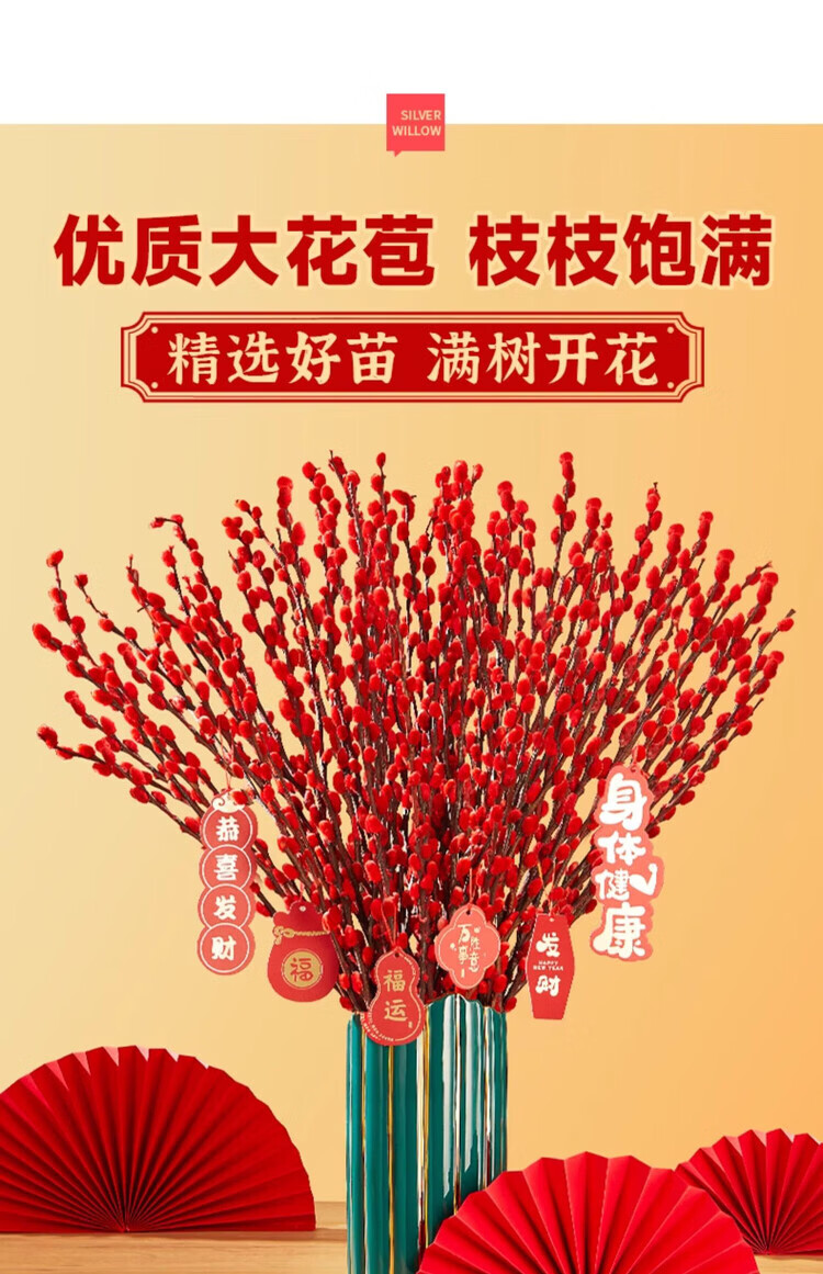 银柳真花鲜枝干花摆件室内客厅鲜花绿植新年年宵花卉植物过年春节 60厘米【10支】送挂件