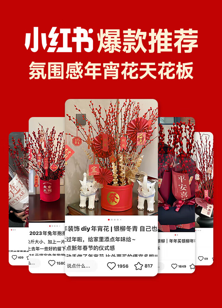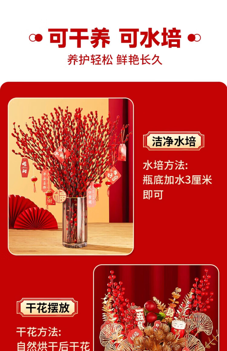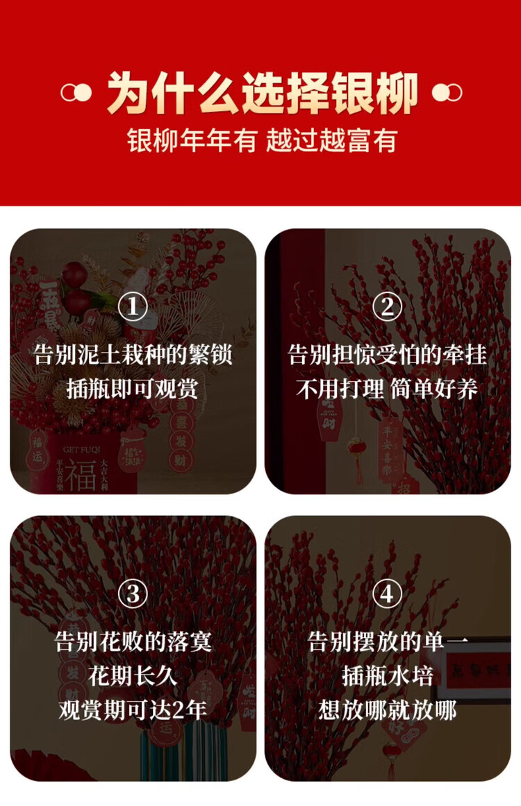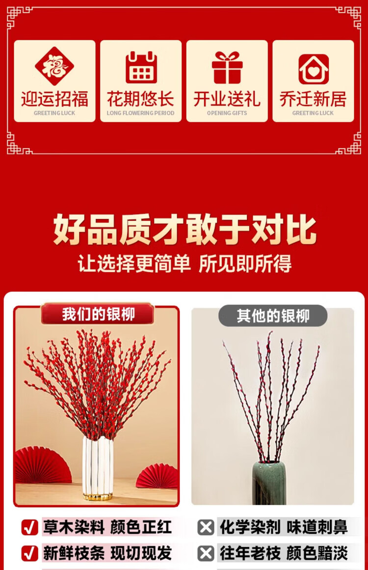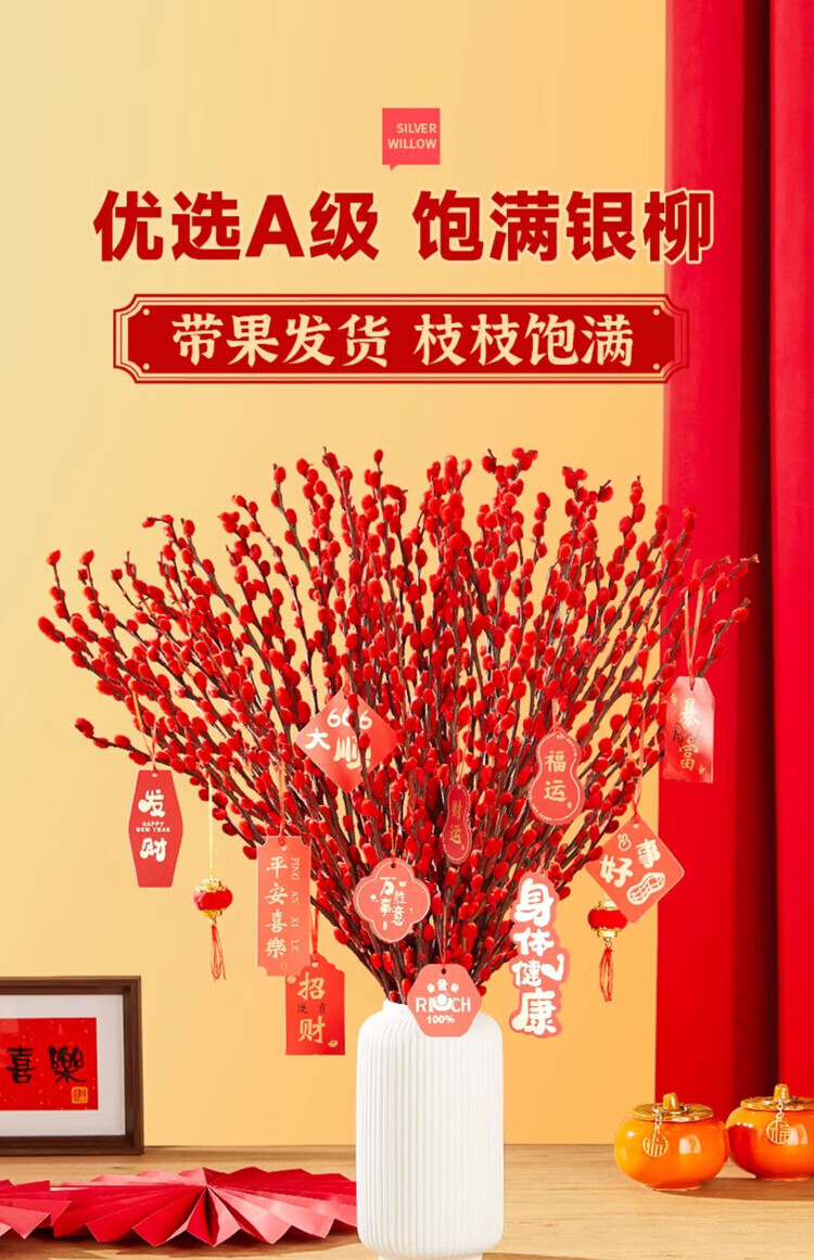 银柳真花鲜枝干花摆件室内客厅鲜花绿植新年年宵花卉植物过年春节 60厘米【10支】送挂件