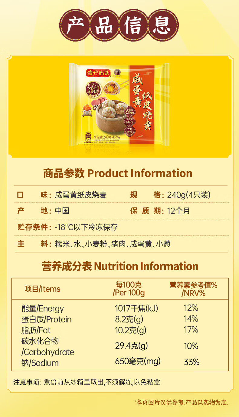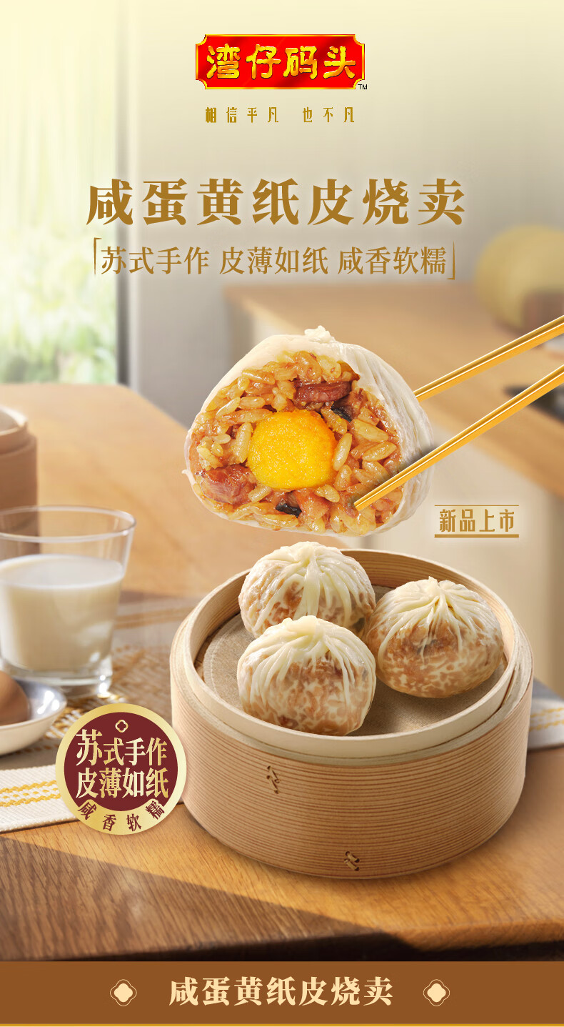 湾仔码头咸蛋黄纸皮烧卖 240g 4只 烧麦早餐速食半成品食品面点年货送礼