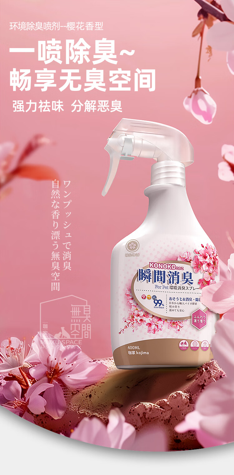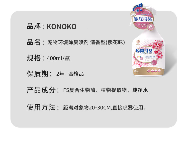 KONOKO宠物除臭剂猫咪猫砂抑菌除螨去尿味狗狗除臭喷雾臭味生物酶分解剂
