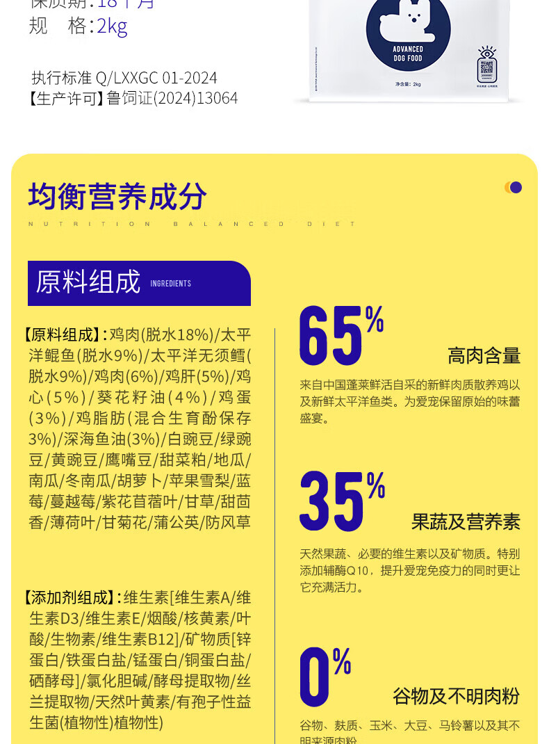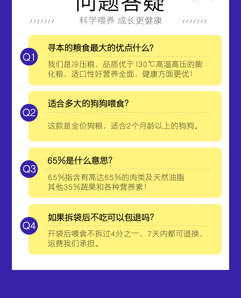 寻本65%无谷全价狗粮2kg幼犬成犬泰迪法斗金毛通用型国产冷压狗粮 升级款日常喂养狗粮8kg