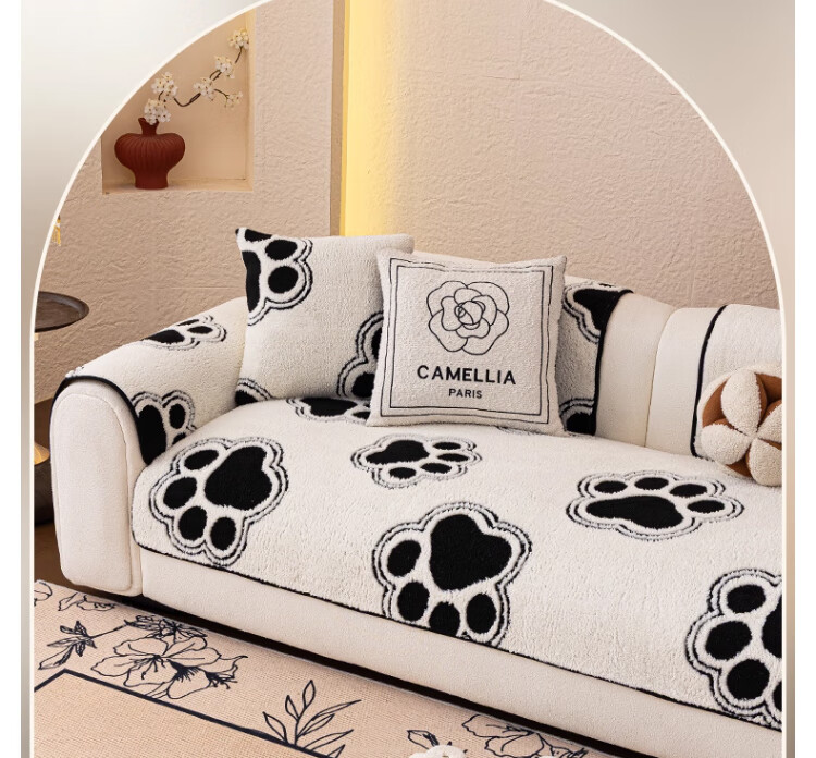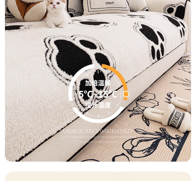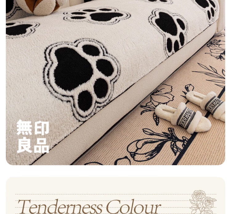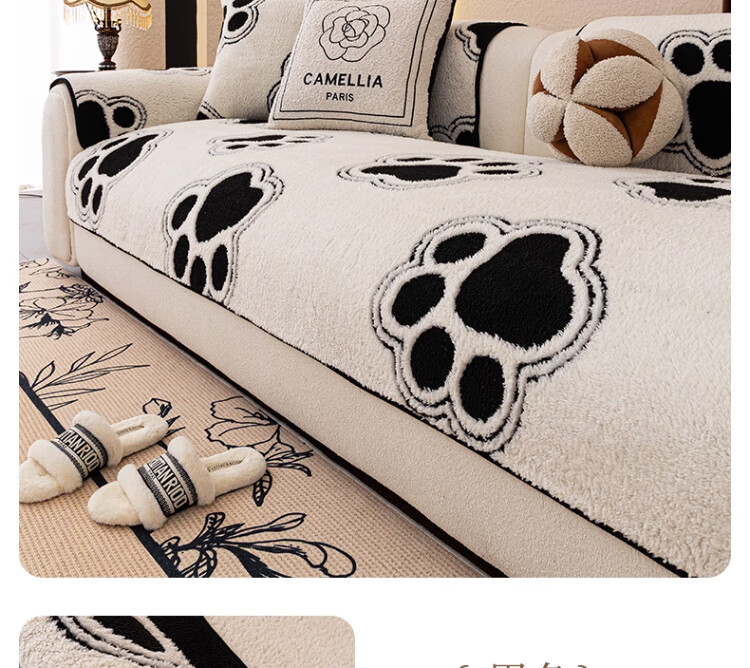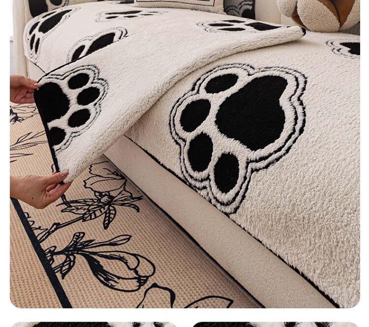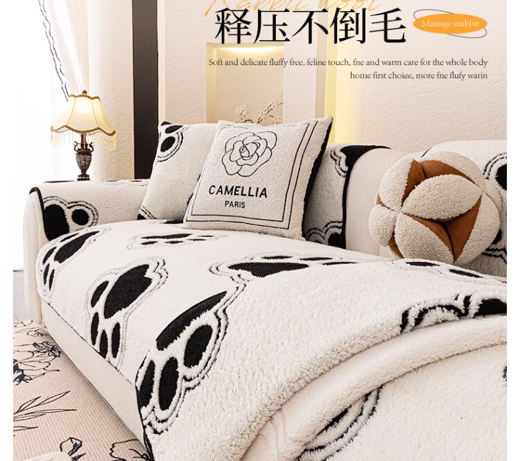 无印良品2025秋冬新款沙发垫毛绒高级感保暖蓄热沙发座垫盖布加厚防滑坐垫 旺旺爪-黑色【优质亲肤毛绒 撸猫感温暖体验】 70*70cm (可做扶手或靠背)