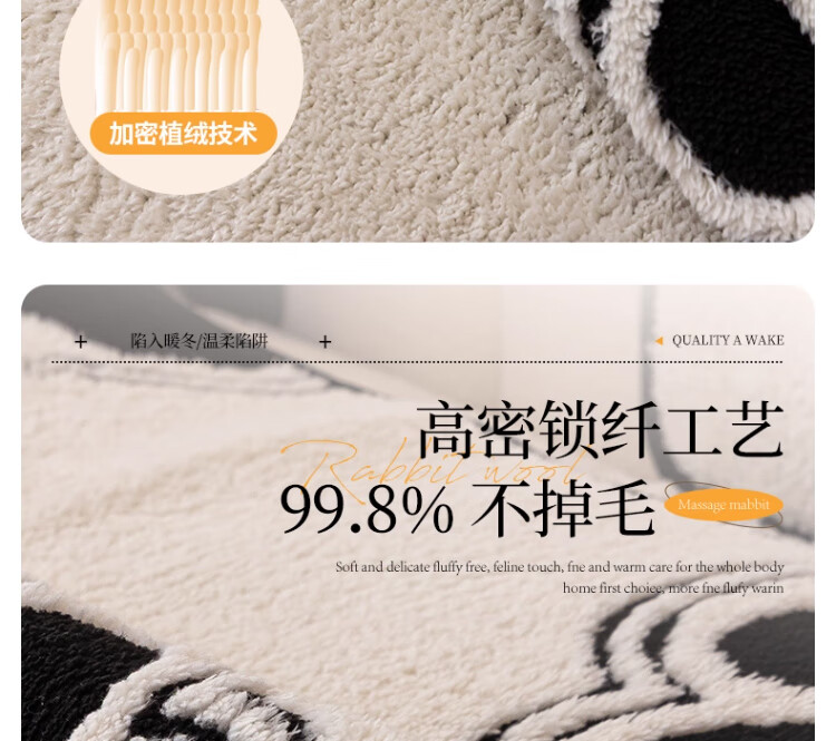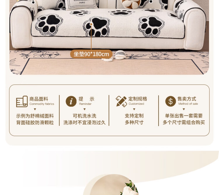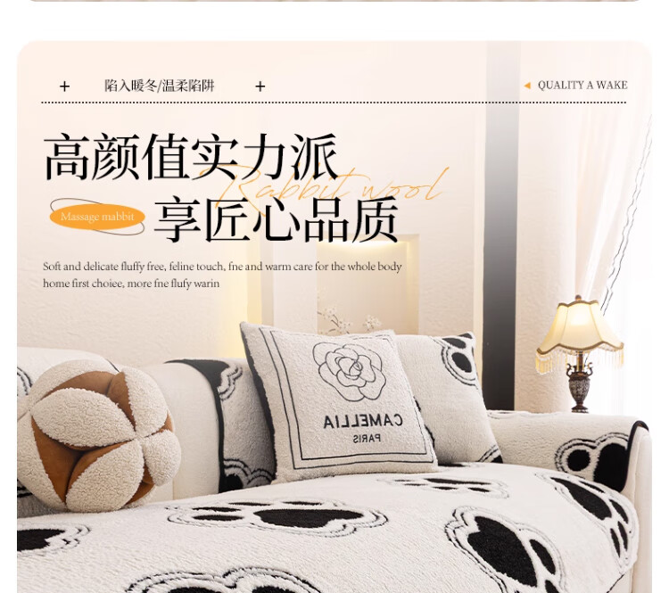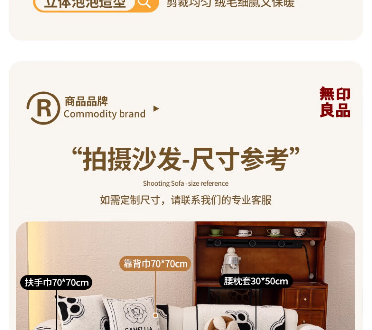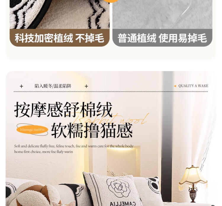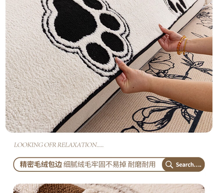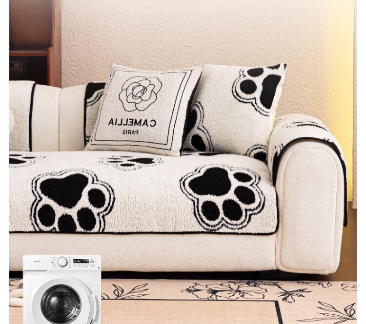 无印良品2025秋冬新款沙发垫毛绒高级感保暖蓄热沙发座垫盖布加厚防滑坐垫 旺旺爪-黑色【优质亲肤毛绒 撸猫感温暖体验】 70*70cm (可做扶手或靠背)