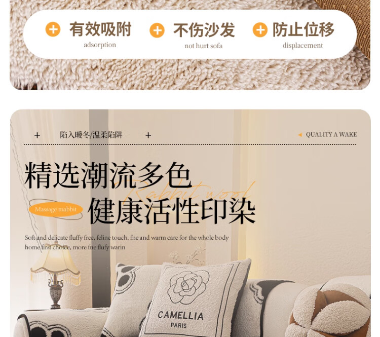 缔卓怡玫瑰绒沙发垫冬季毛绒加厚防滑简约高级感皮沙发套罩坐垫盖布巾 玫瑰绒-香槟色 70cm*70cm