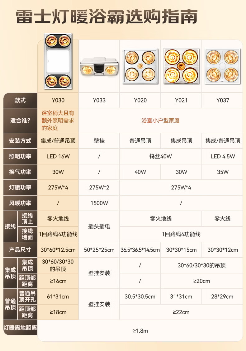雷士(NVC)灯暖浴霸集吊系列四灯暖照明排风换气一体Y030浴室