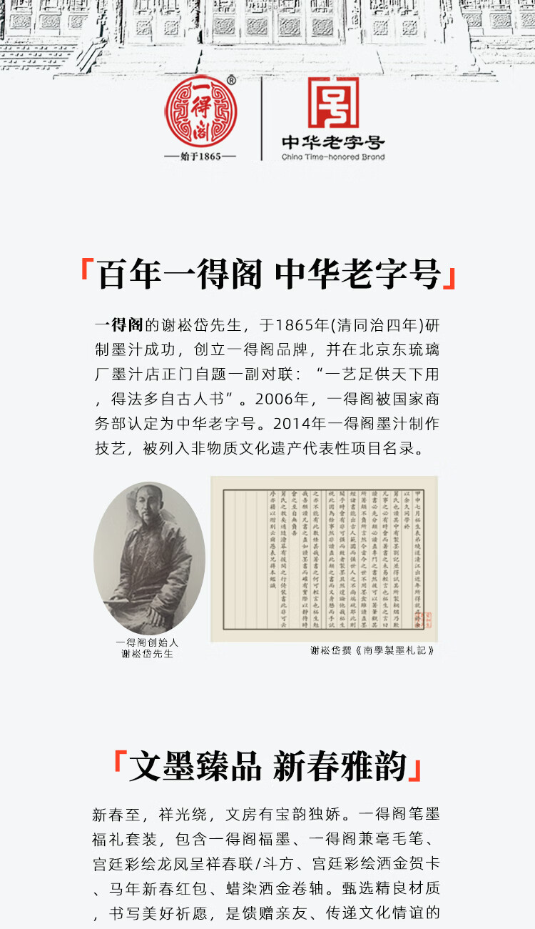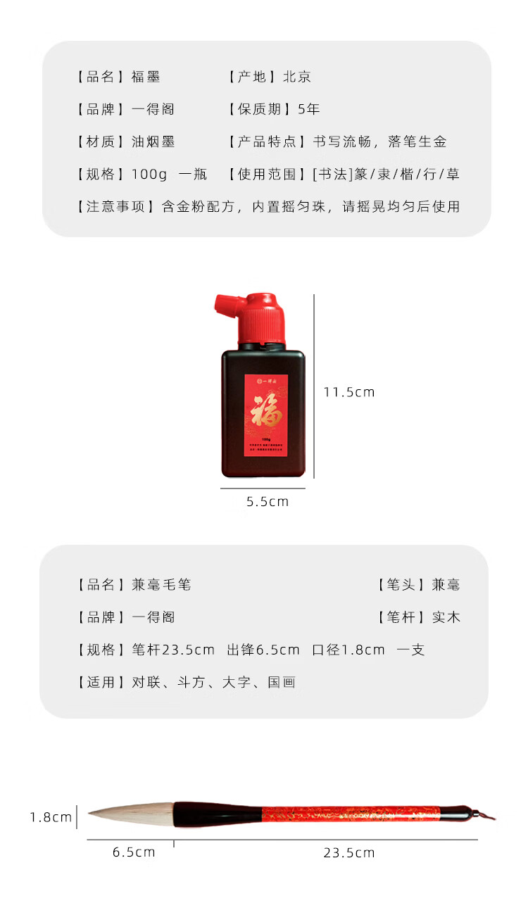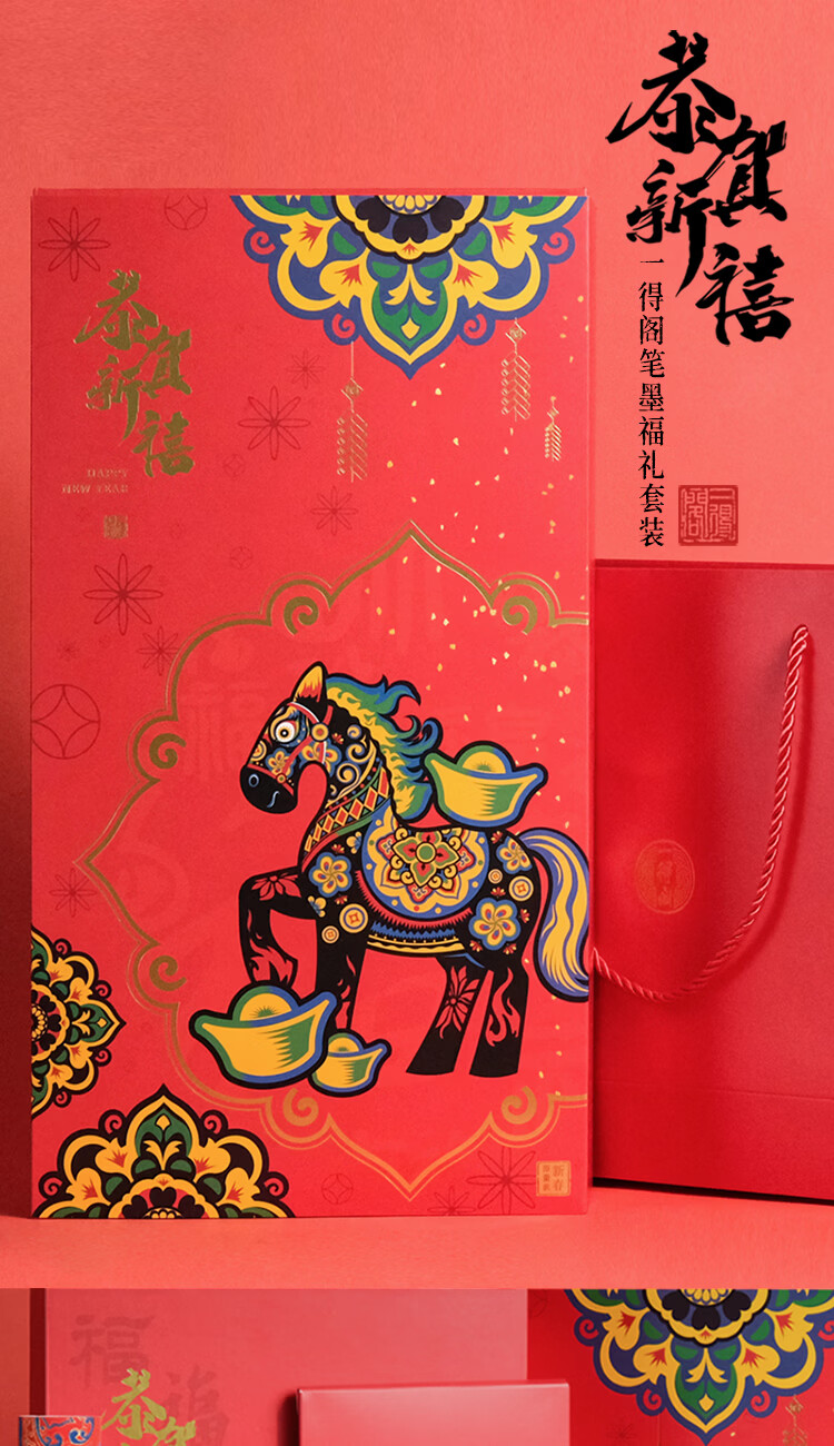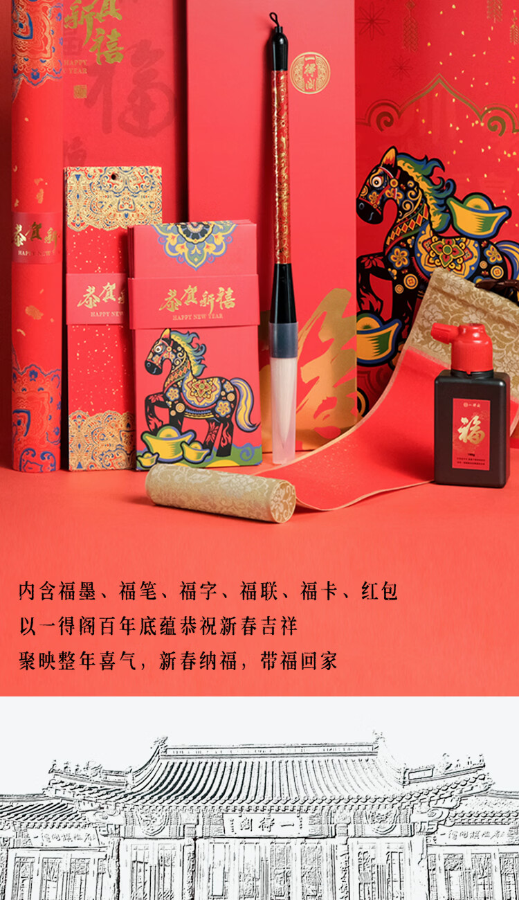 一得阁文房四宝套装兼毫狼毫毛笔 笔墨纸砚毛边纸文具礼品礼盒春联对联新春五福套装 春联五福套装 马年笔墨福礼套装