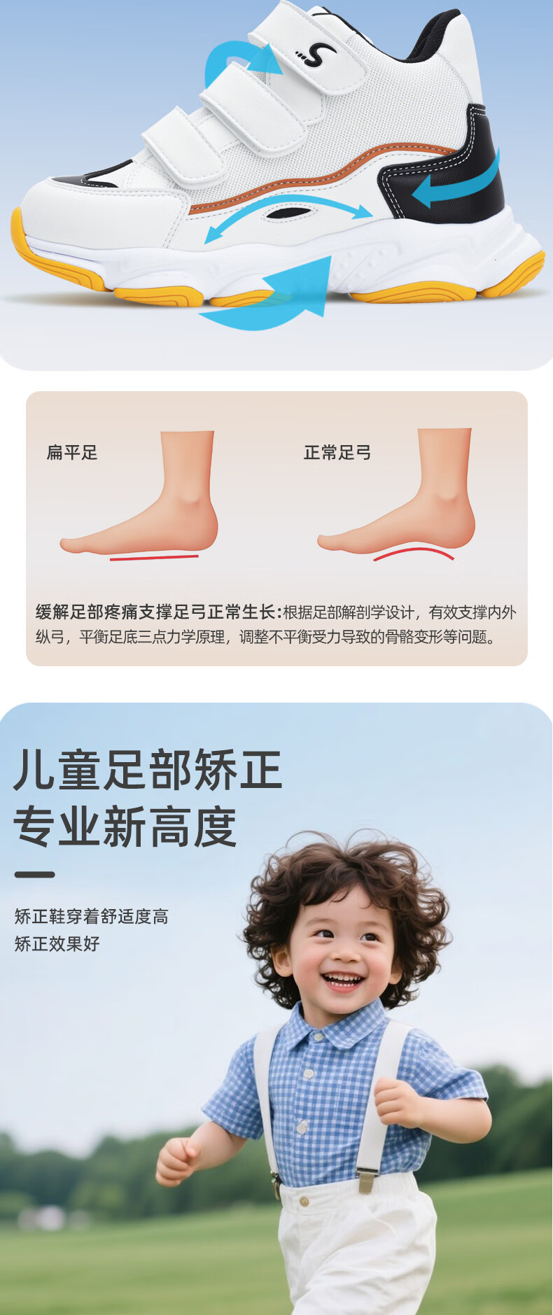 洛崽崽儿童扁平足专用鞋足外翻矫正器内八字学步鞋XO型腿纠正机能 (白色矫正鞋)针对:扁平足/足外翻 28 码(合适脚长16.5cm/内长17.8cm)