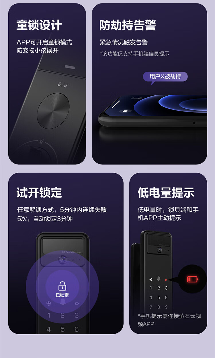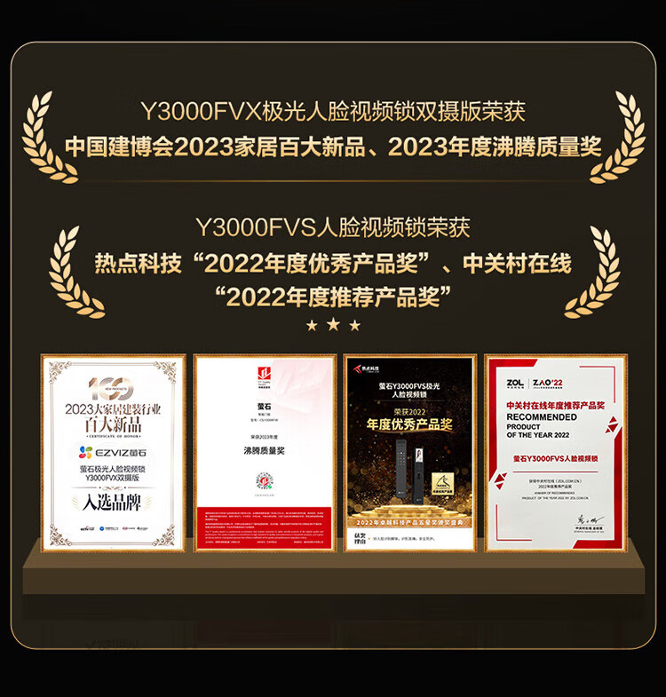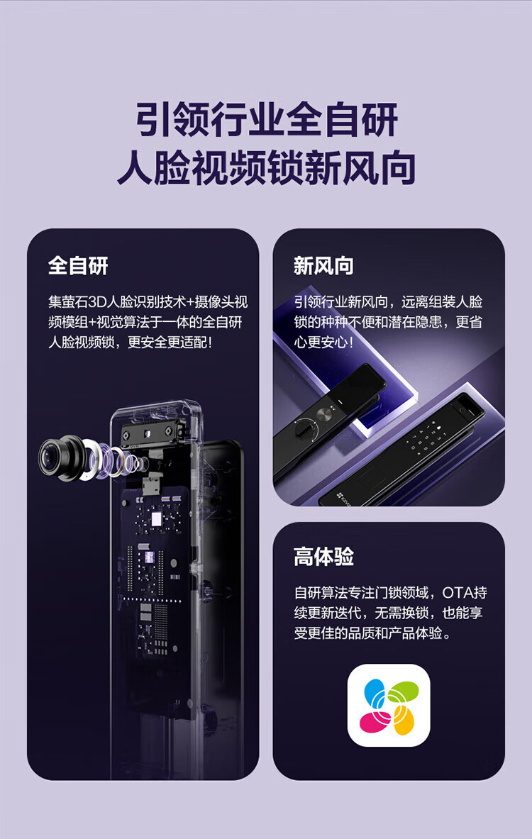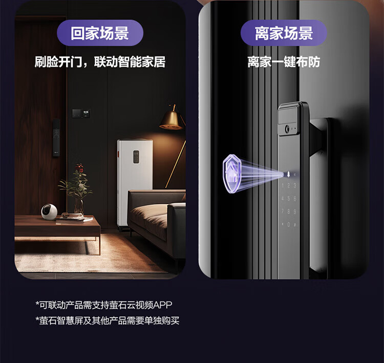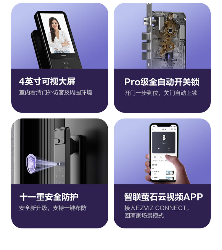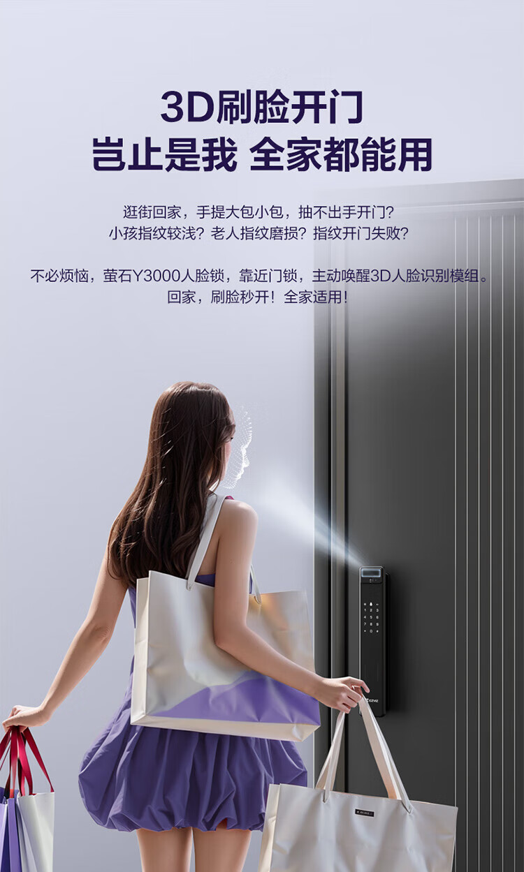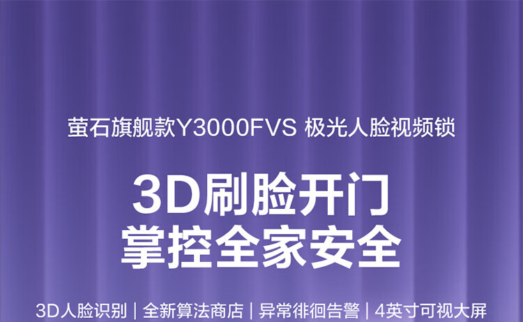 萤石Y3000FVS智能门锁 3D人脸识别智能锁无需指纹室内4英寸可视大屏 全自动锁门 60%选【3D人脸大屏锁*标准锁】Y3000FVS