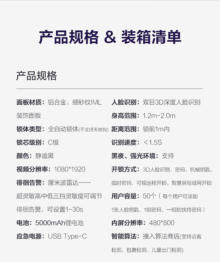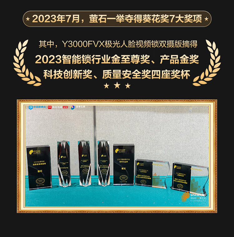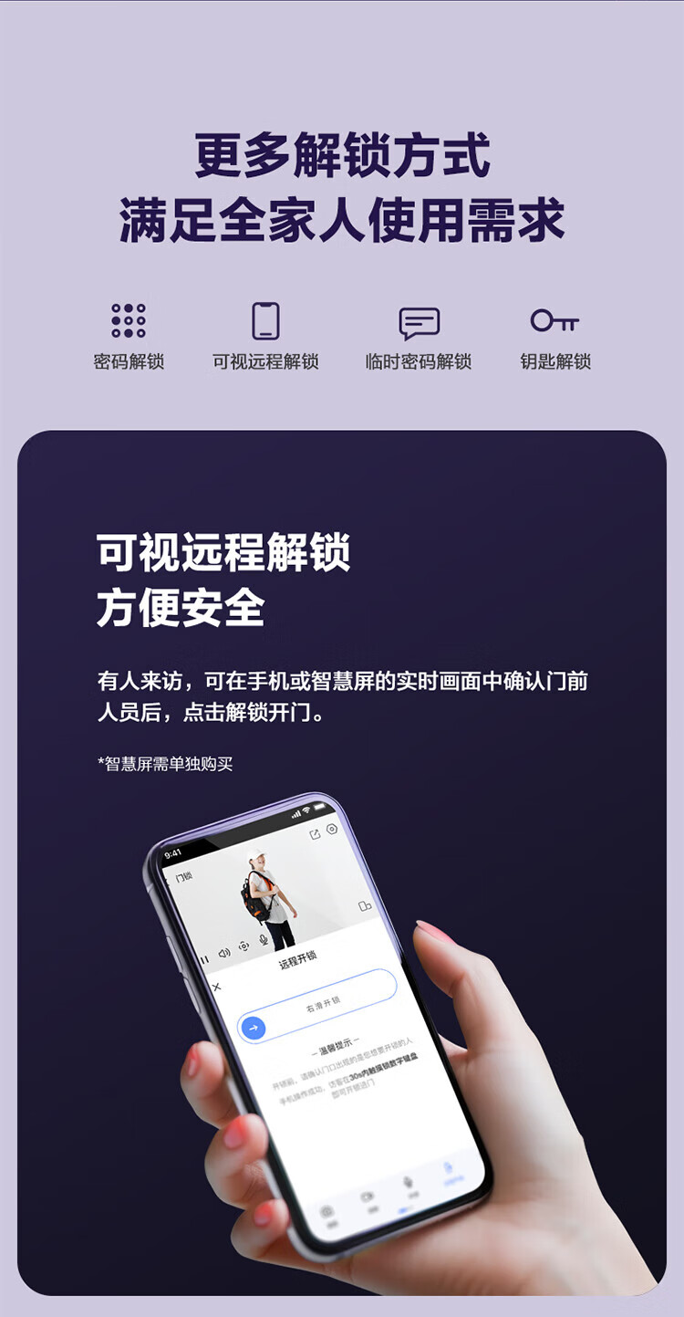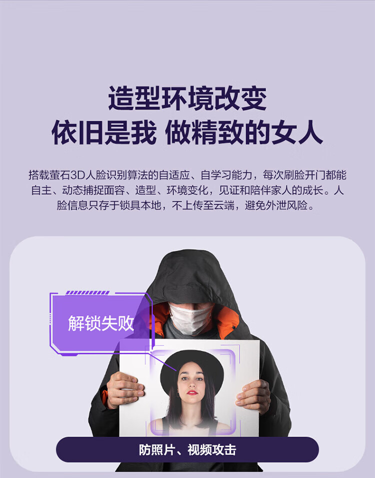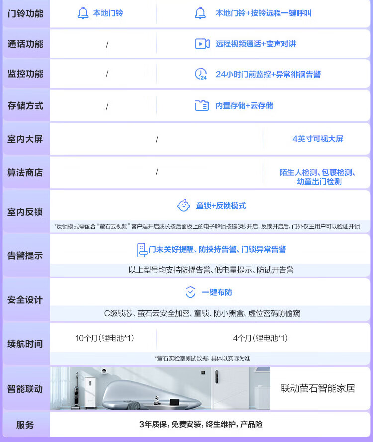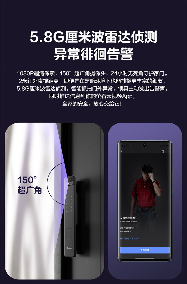 萤石Y3000FVS智能门锁 3D人脸识别智能锁无需指纹室内4英寸可视大屏 全自动锁门 60%选【3D人脸大屏锁*标准锁】Y3000FVS