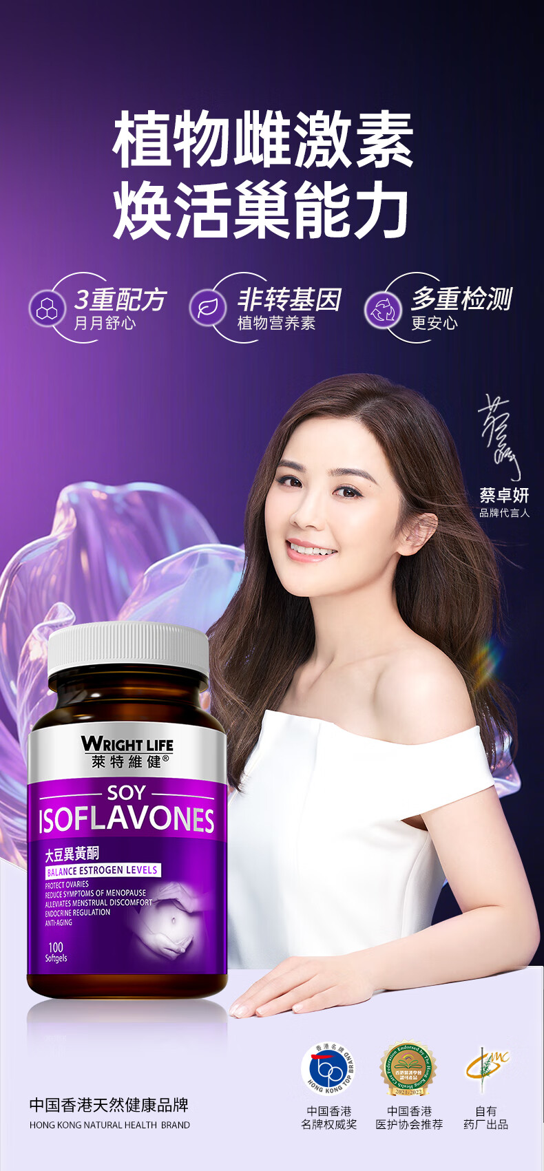 萊特維健大豆异黄酮更年期卵巢补充雌激葡萄籽素维E女性软胶囊 【新客尝鲜平衡激素】100粒*1瓶