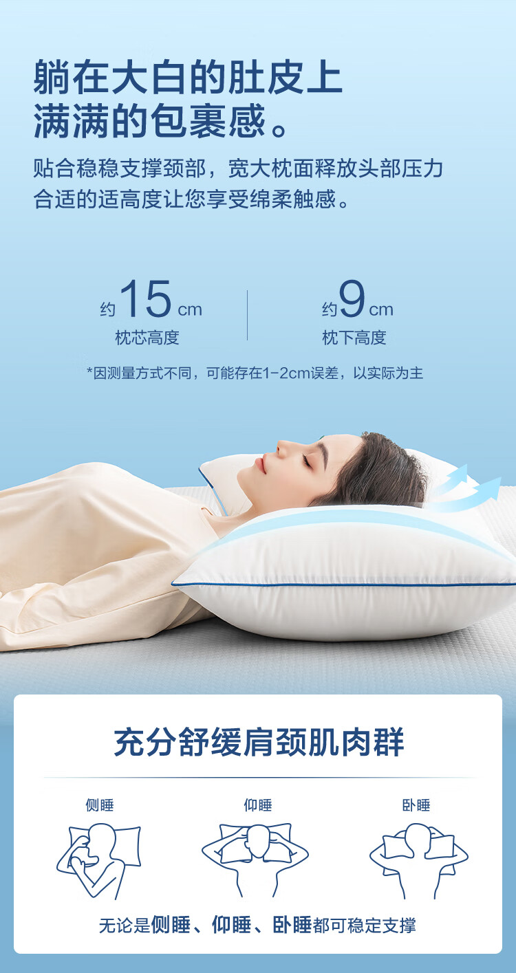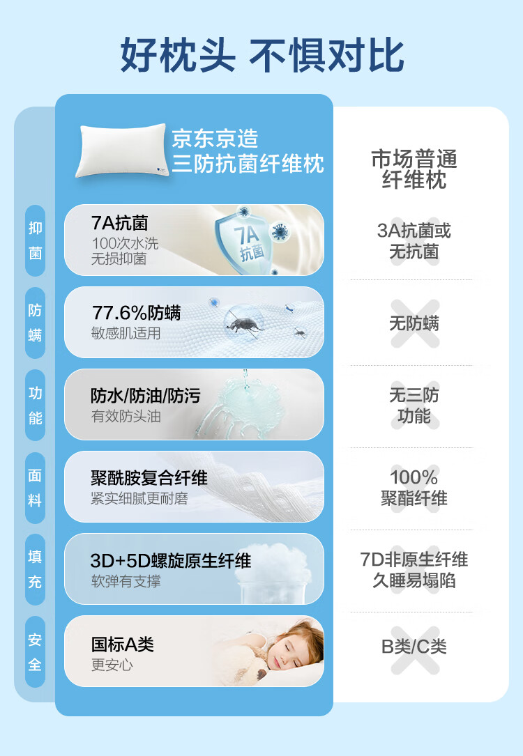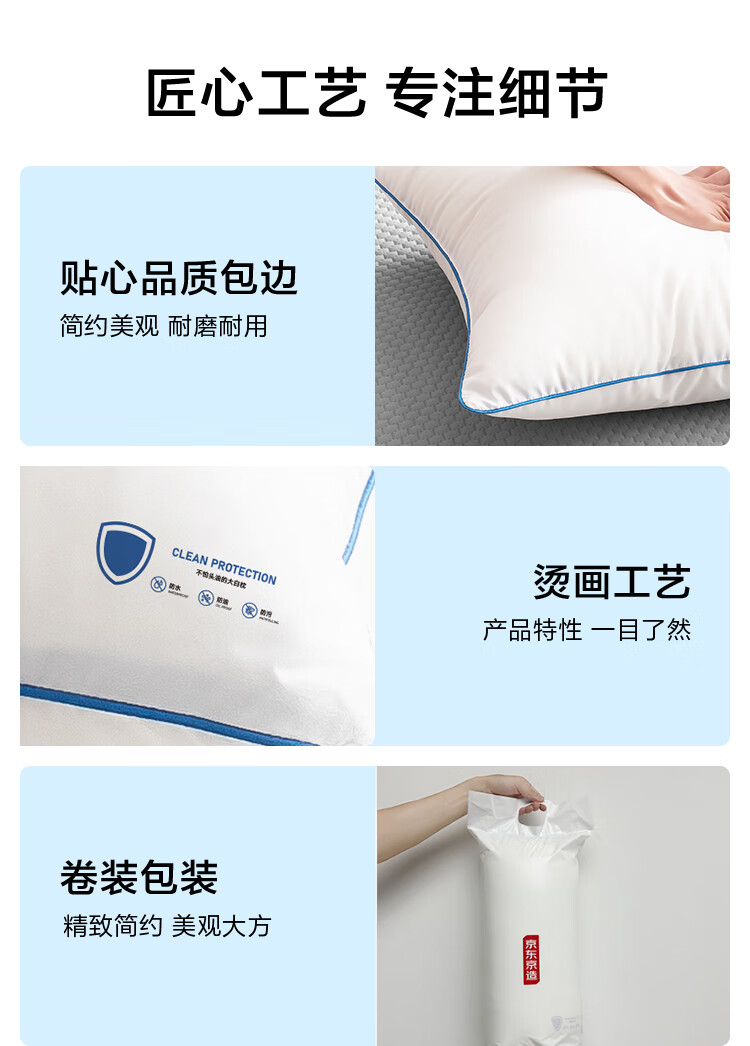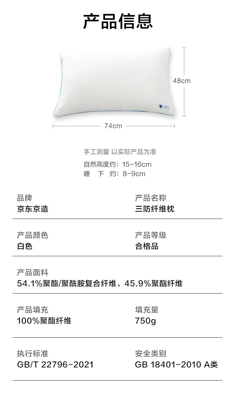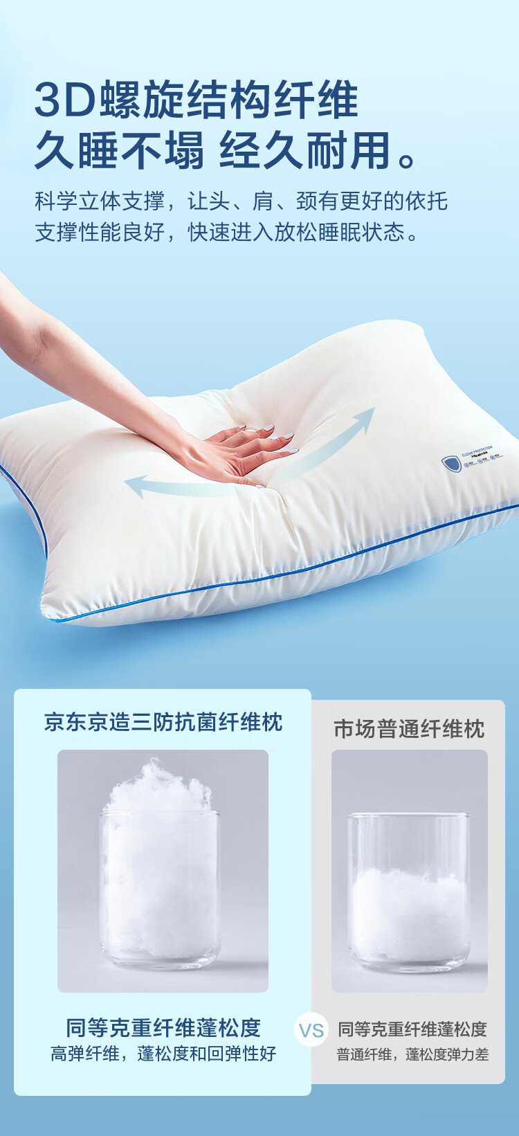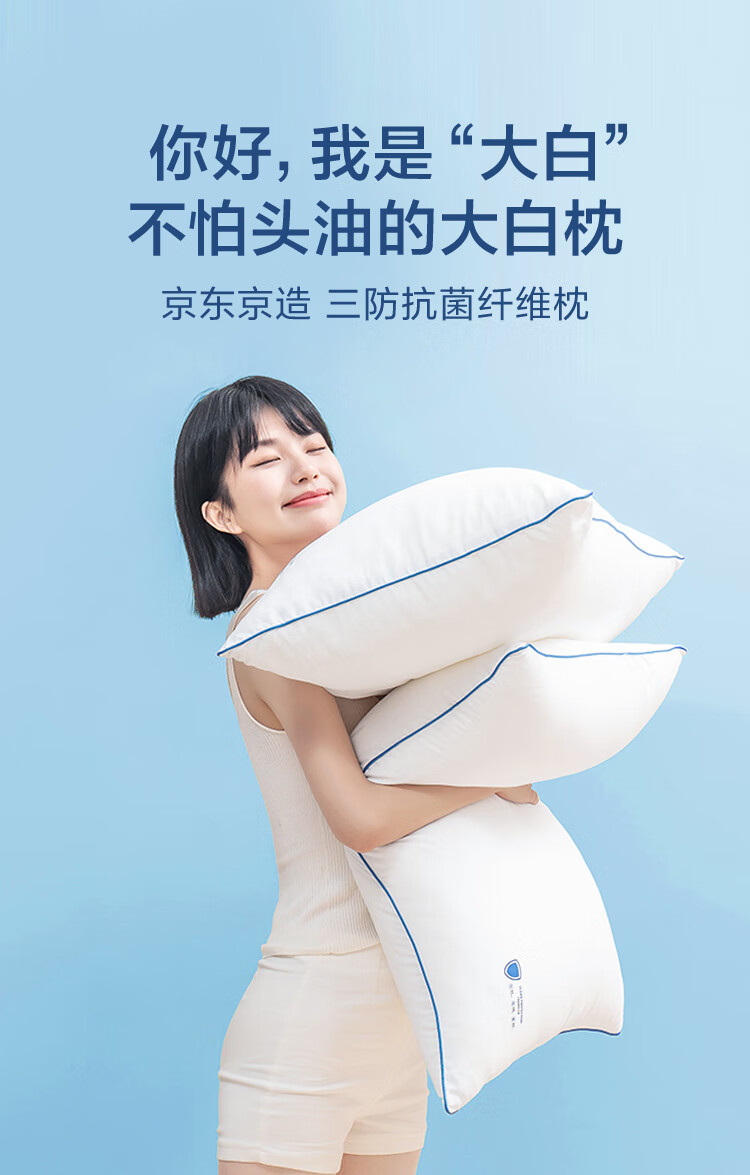 京东京造 不怕头油大白枕 A类抗菌纤维柔软颈椎枕家用成人枕头枕芯 单枕