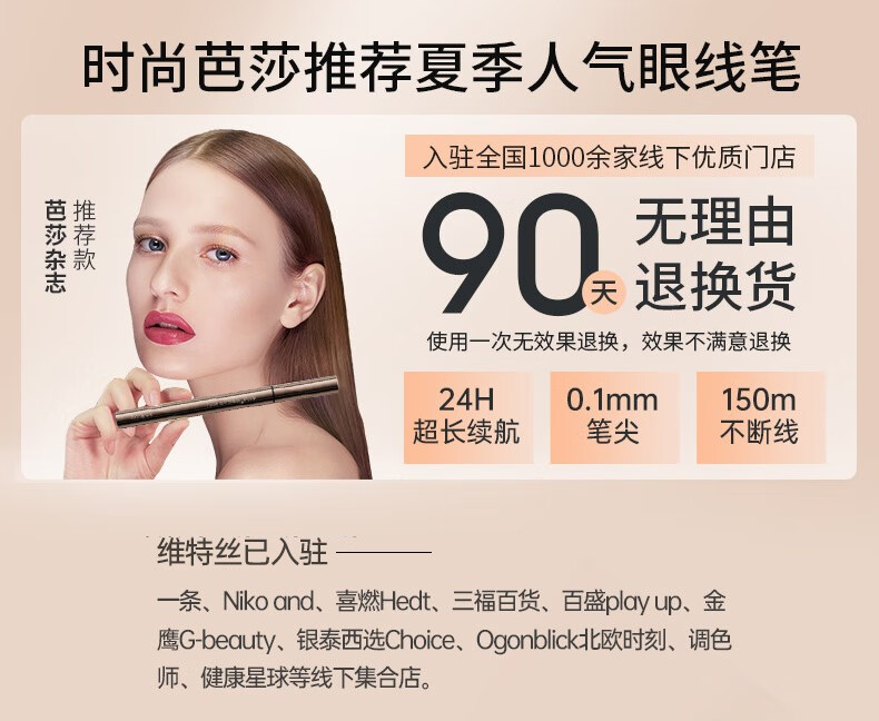 维特丝眼线液笔防水防汗不晕染持久极细顺滑不脱妆速干卧蚕笔二合一新手