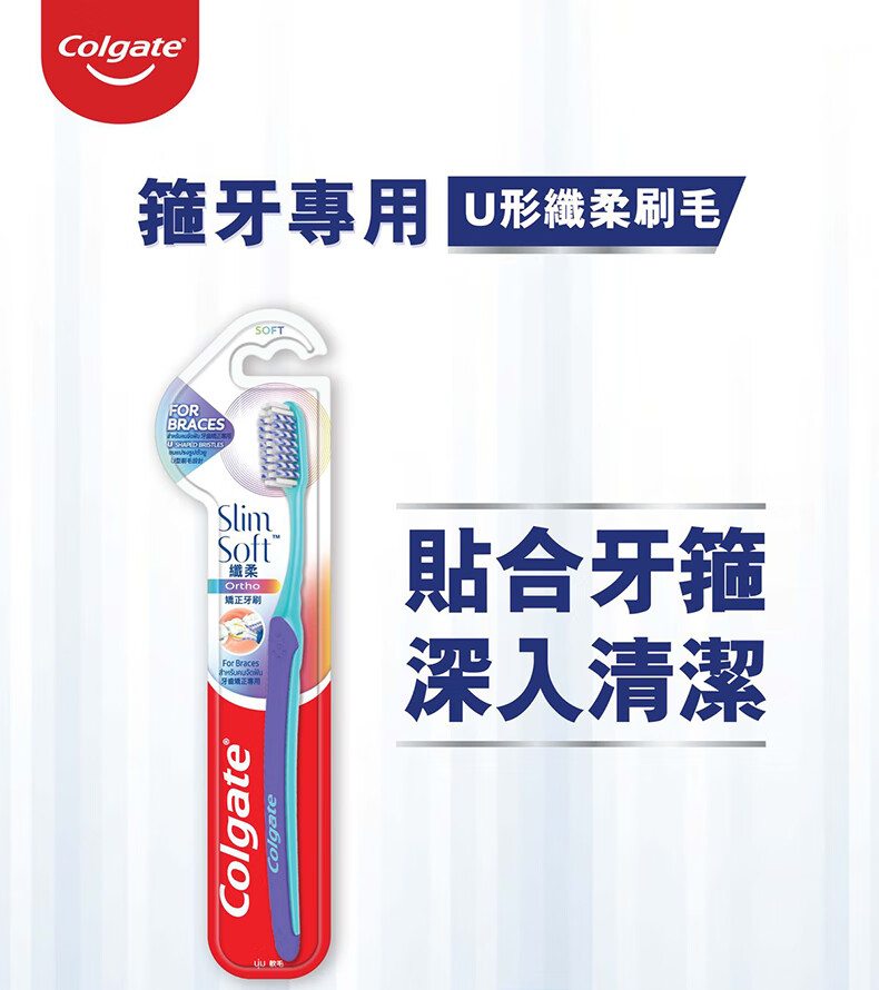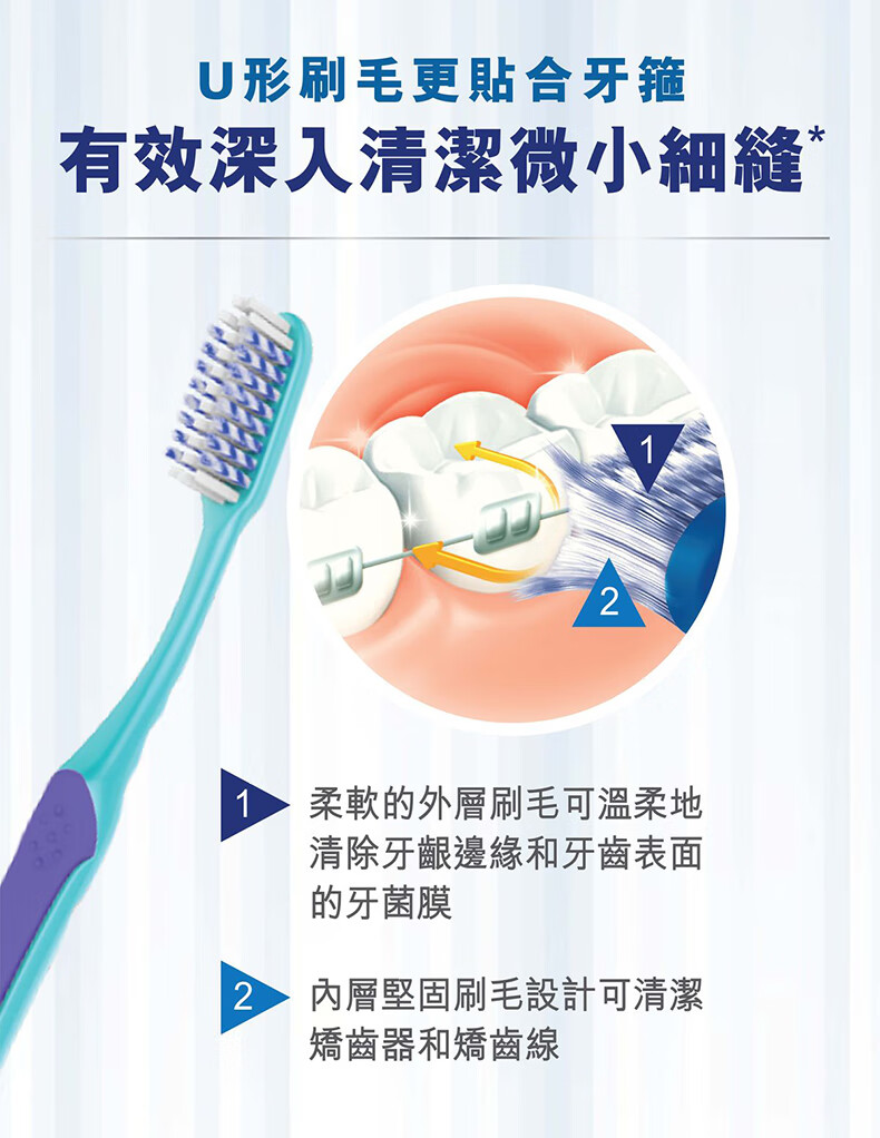 高露洁(Colgate)正畸牙刷牙齿清洁 矫正箍牙戴牙套专用口腔护理软毛牙刷U型设计