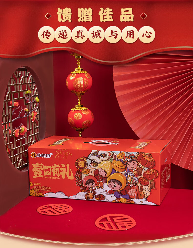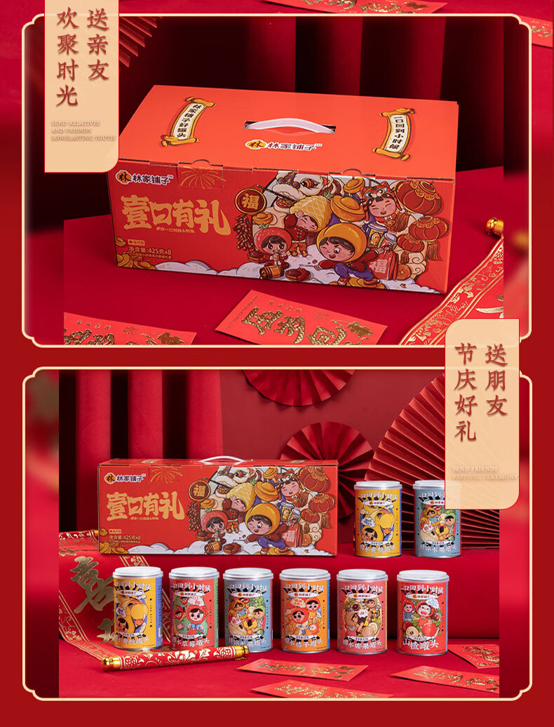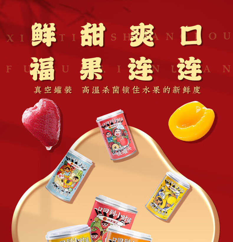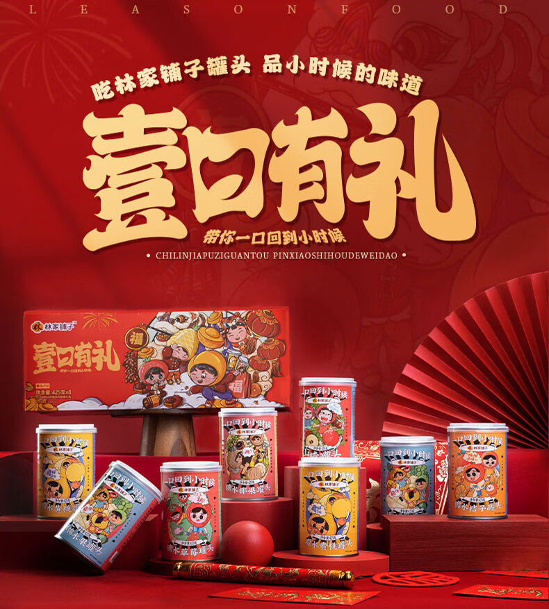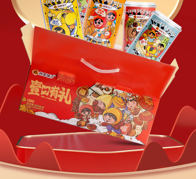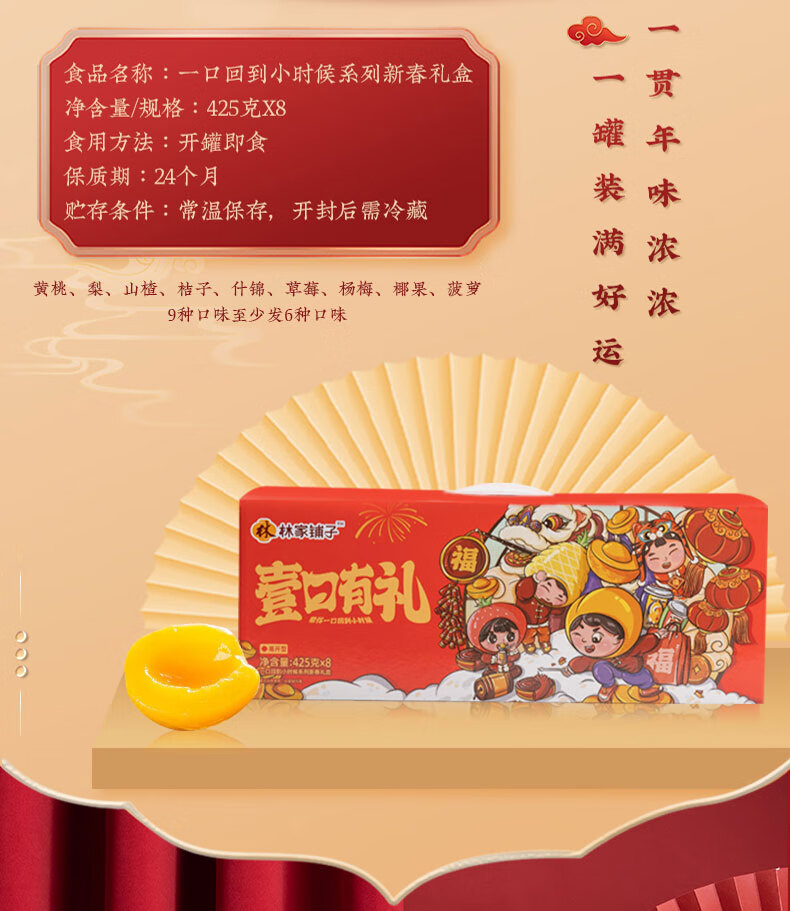 林家铺子八福果水果罐头礼盒425g*8罐混合口味(多种口味随机)水果罐头礼盒 新年礼盒425g*8罐黄桃