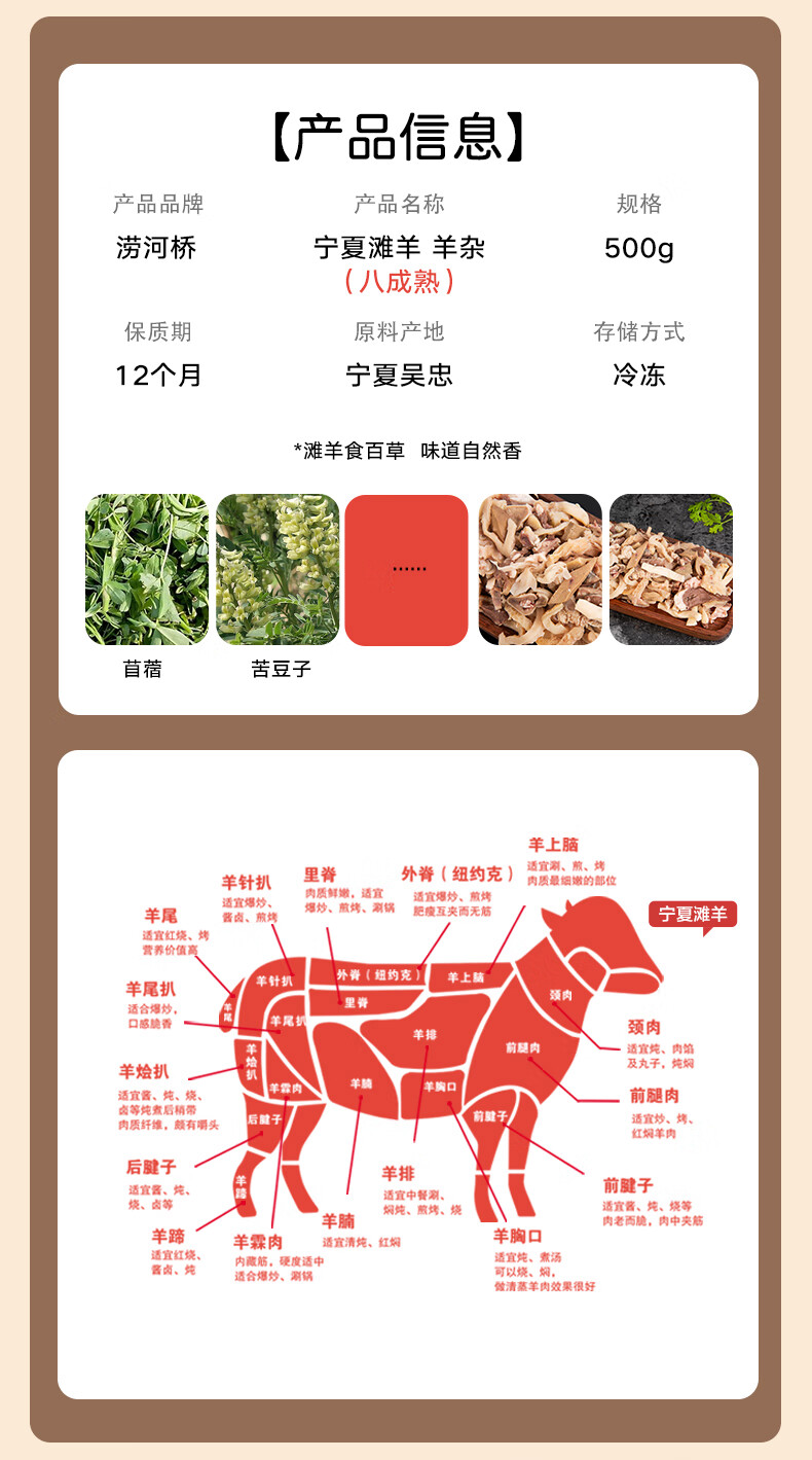 涝河桥 供港 宁夏滩羊 国产原味羊杂500g/袋 原切无添加 火锅爆炒