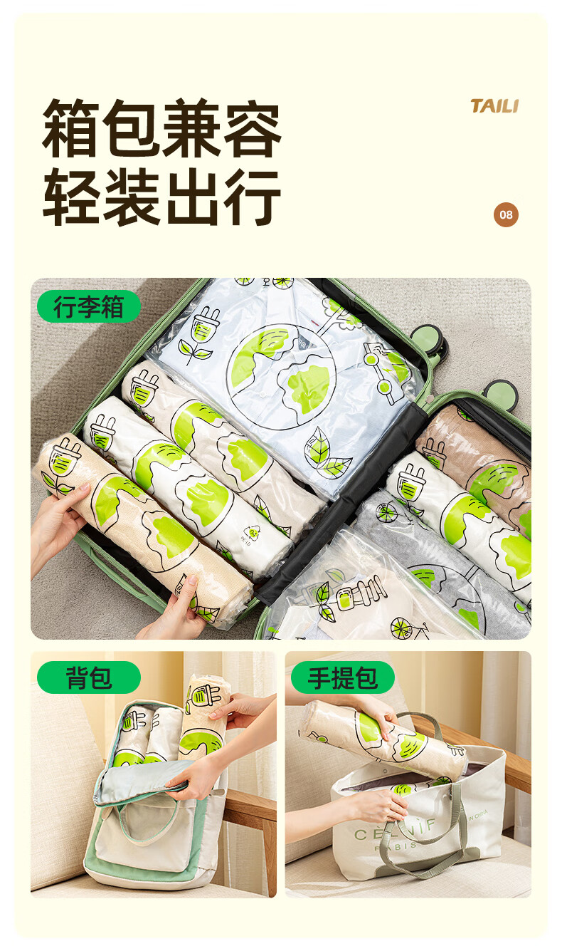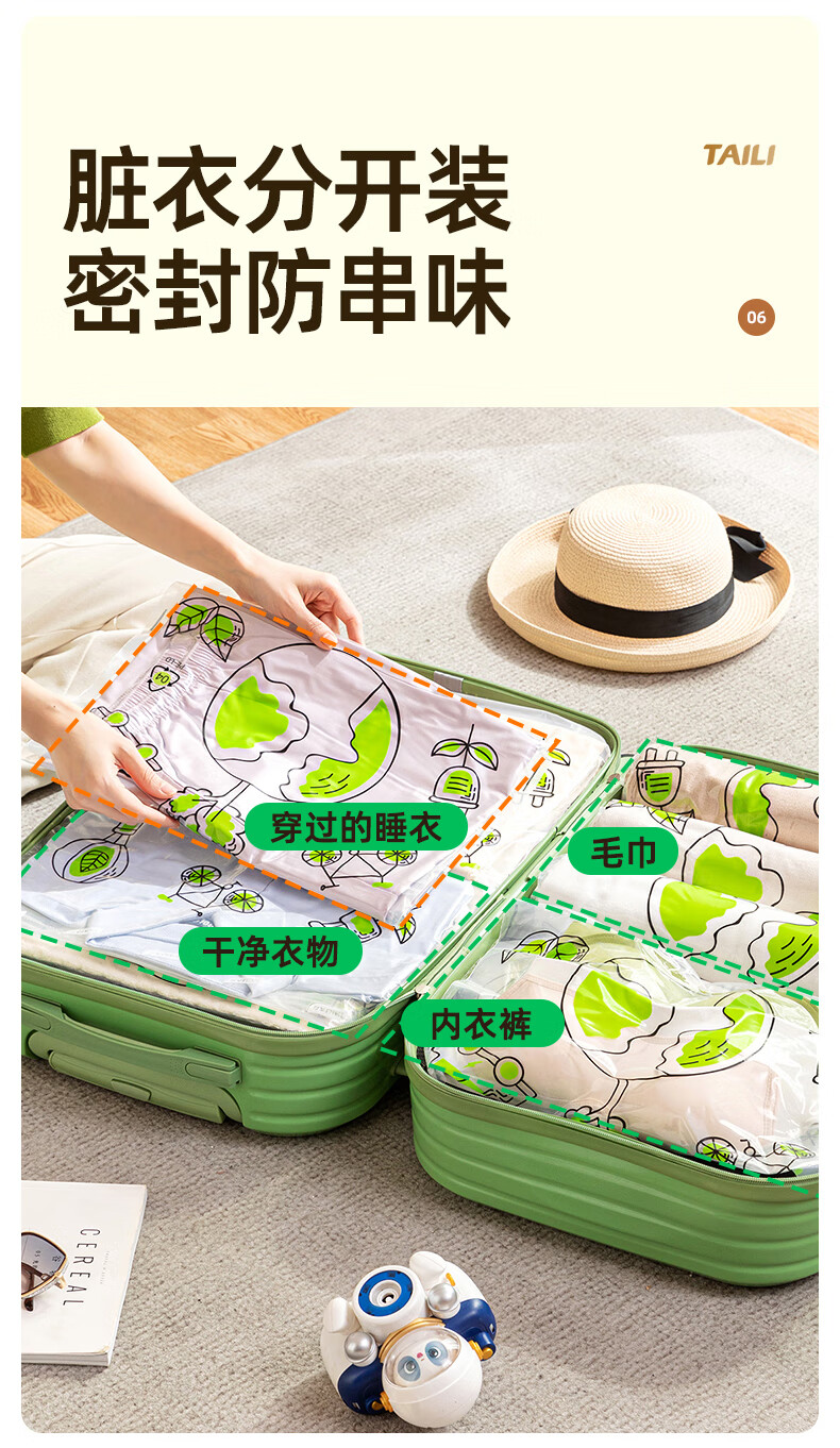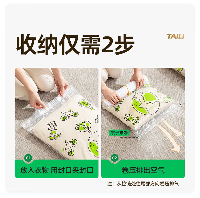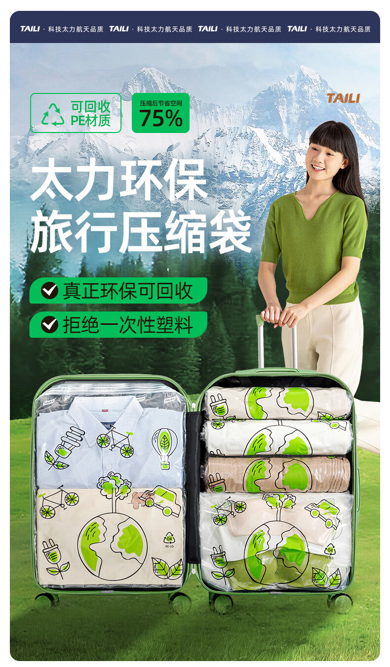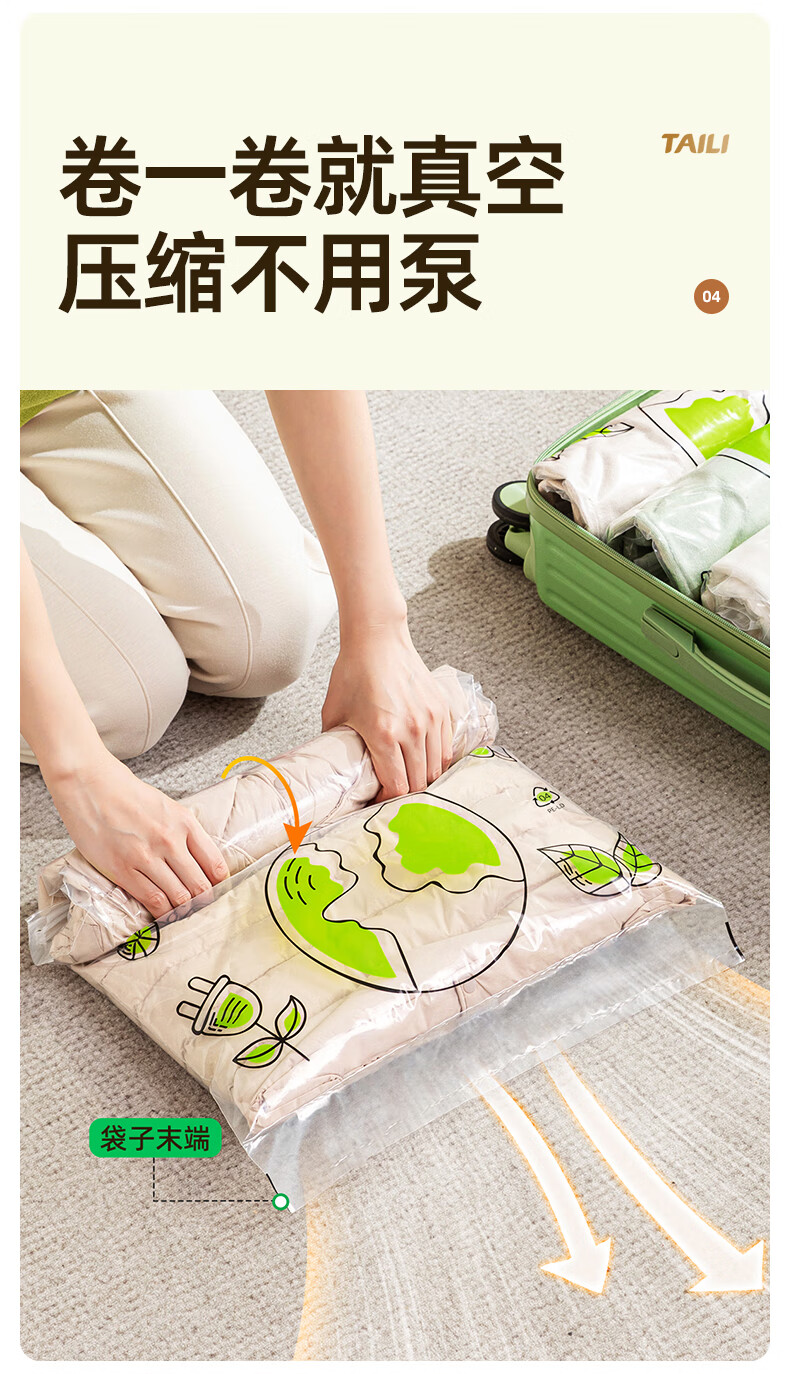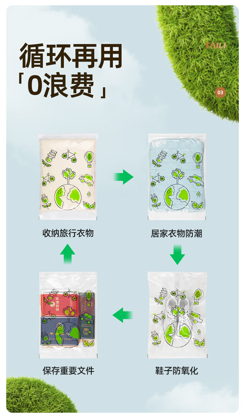 太力环保旅行收纳袋免抽气真空压缩袋行李旅行包衣服整理袋神器 【40*60CM】10个装