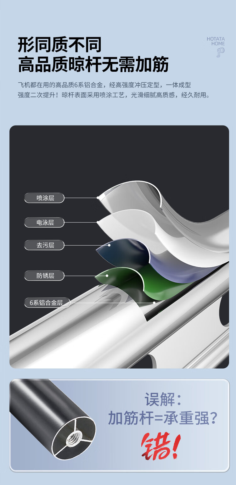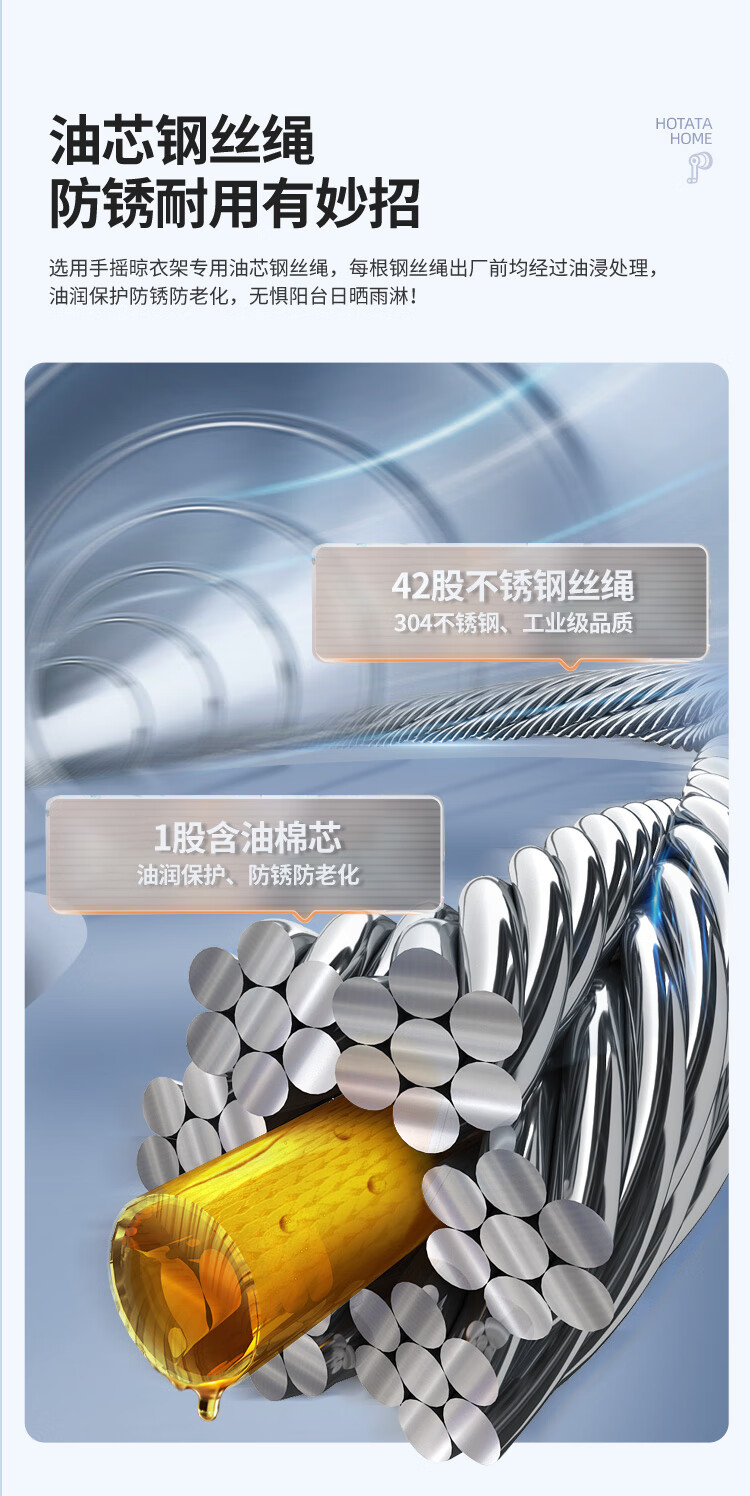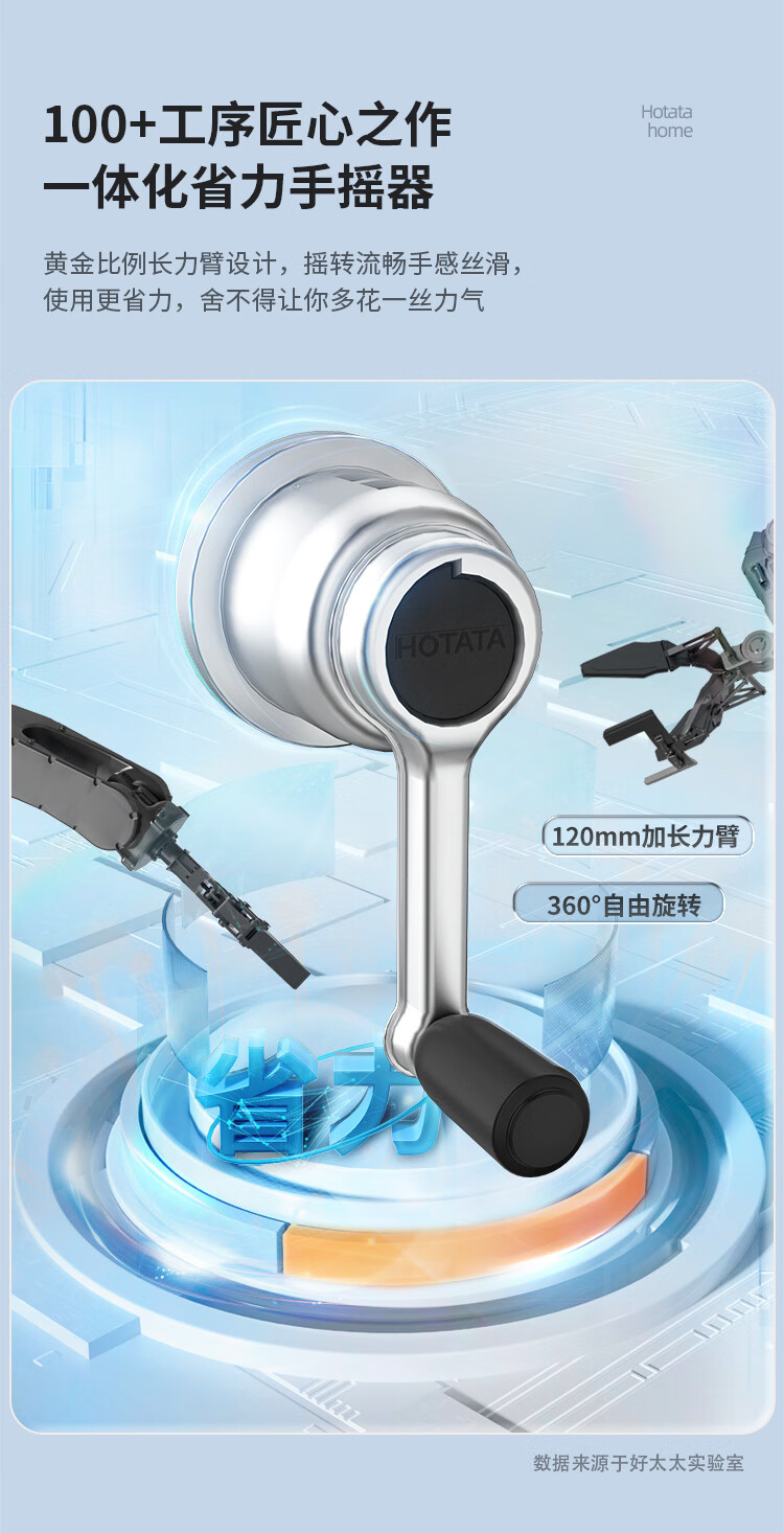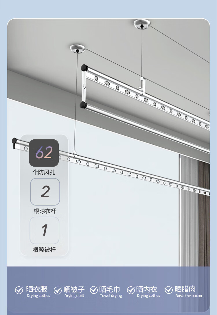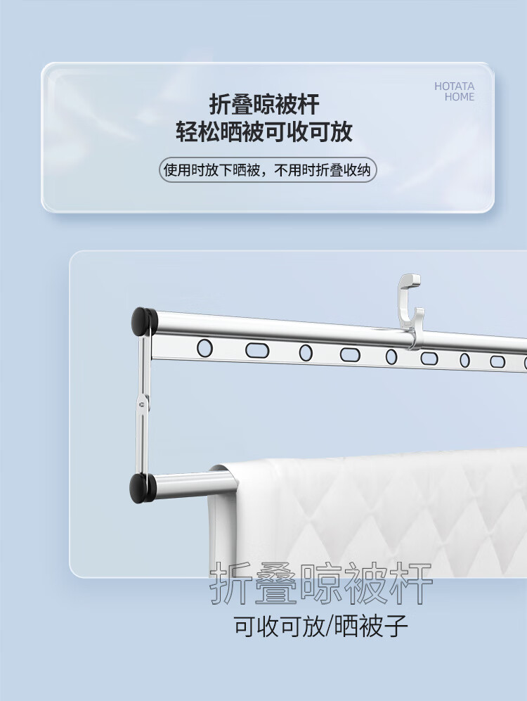 好太太(Hotata)三杆手摇晾衣架阳台室内升降晒衣架铝合金晾衣杆D-1118 2.4米银黑