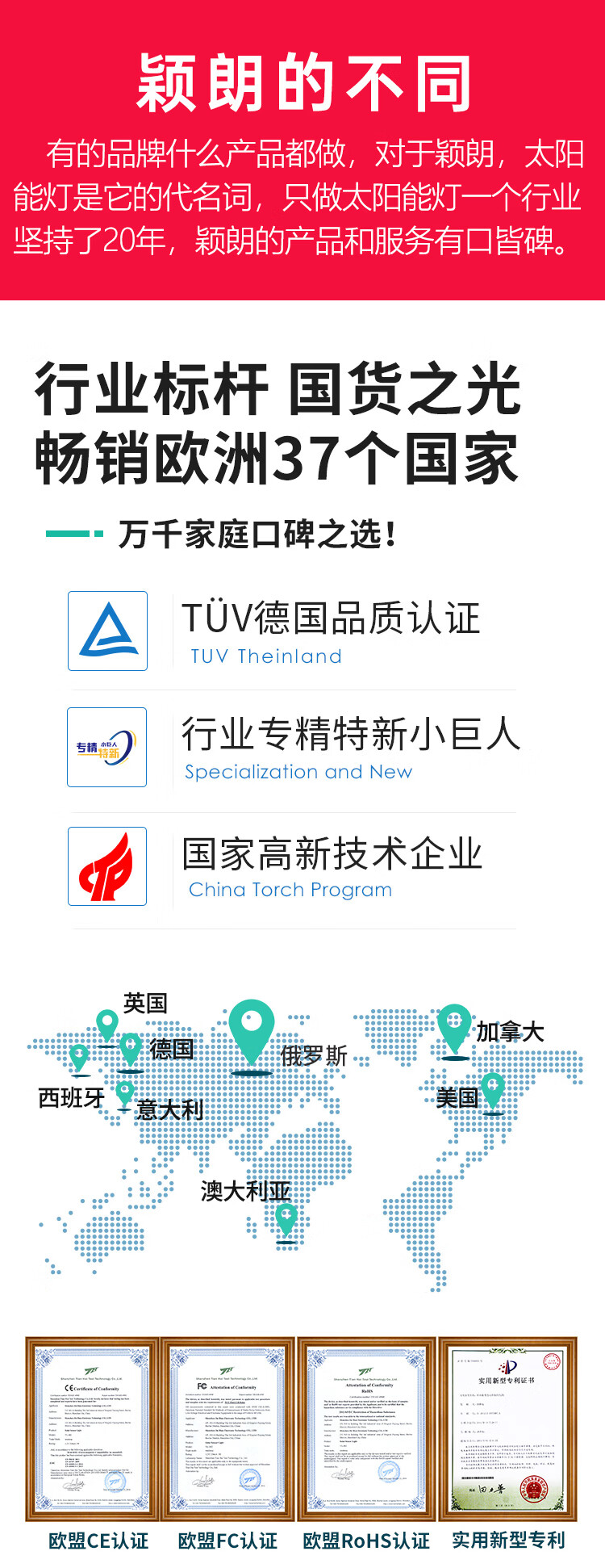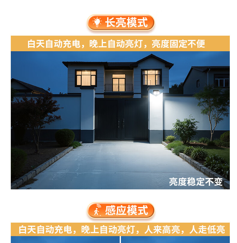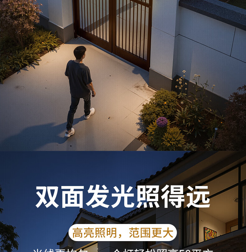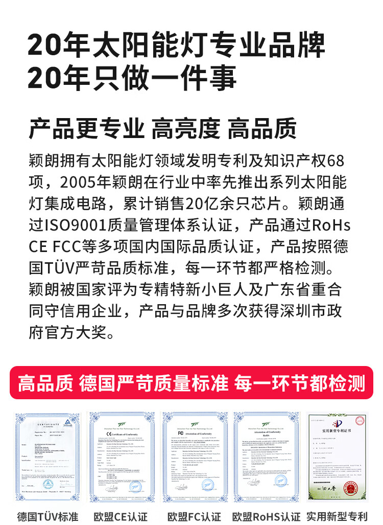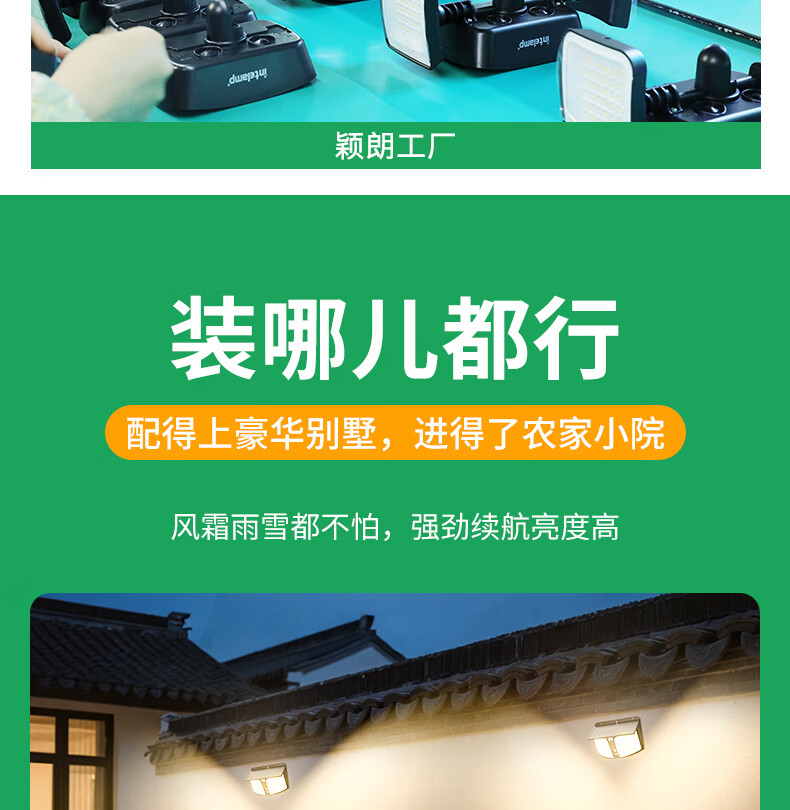 颖朗太阳能灯户外庭院灯农村用院子照明灯超亮大功率免安装感应壁灯 爆亮升级款 德国品质认证