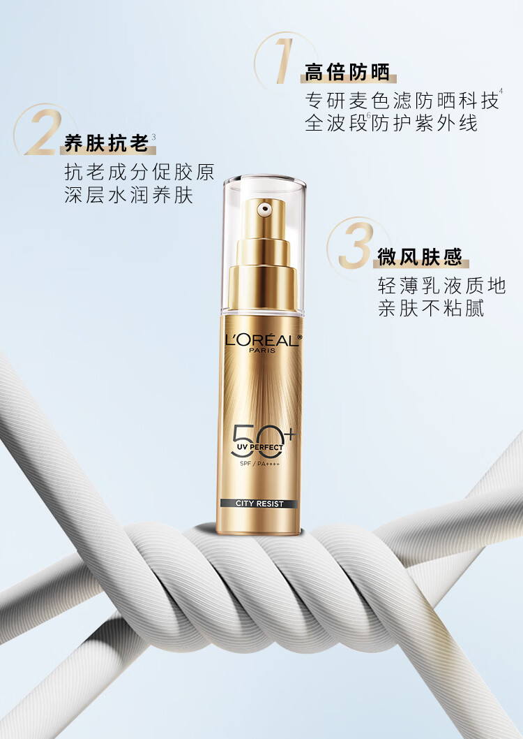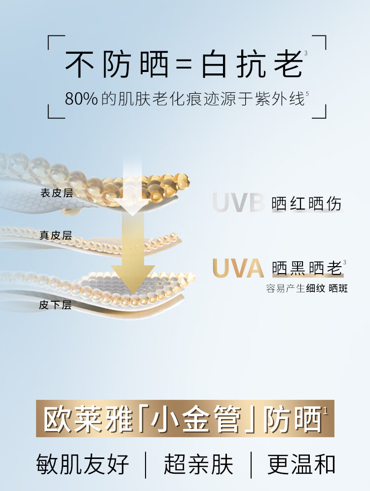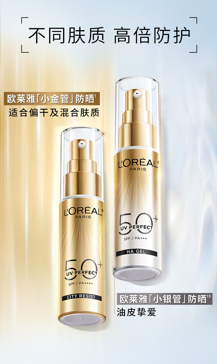 欧莱雅小金管防晒霜30ml户外高倍防晒隔离霜护肤品化妆品新年礼物