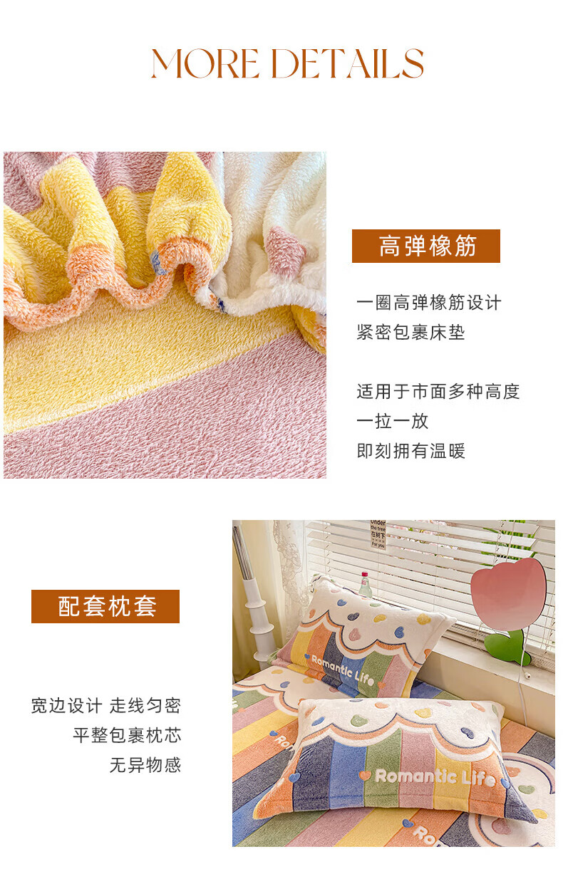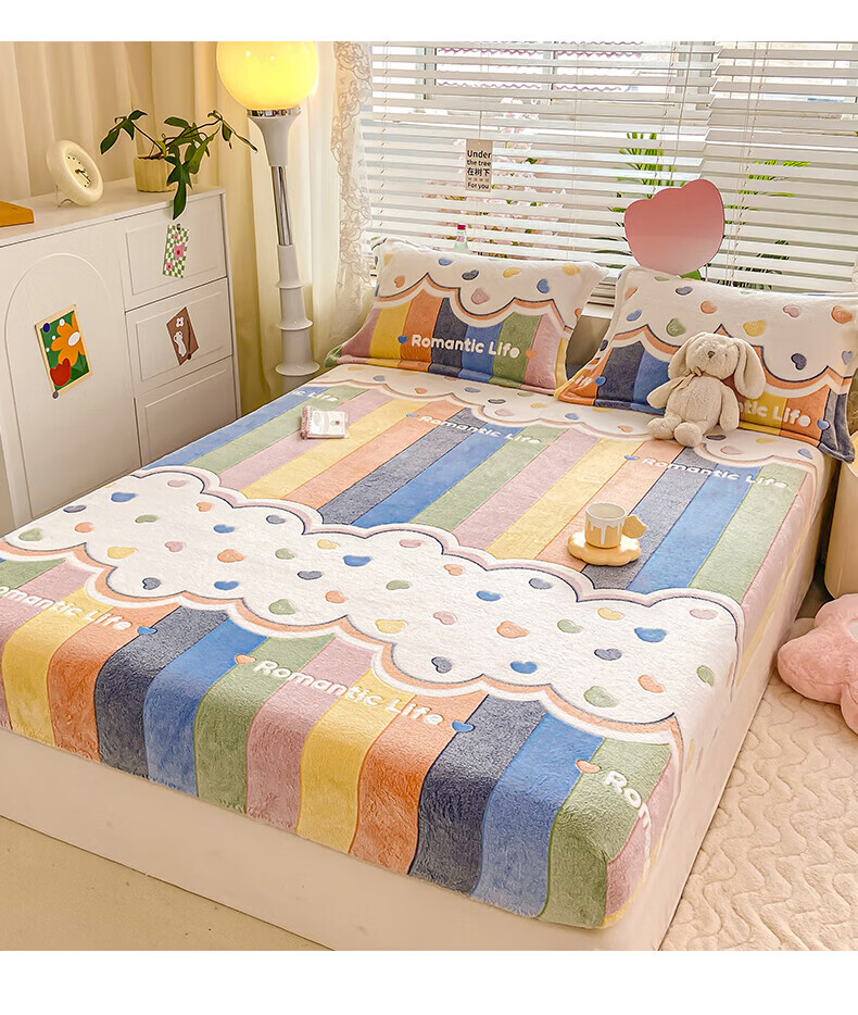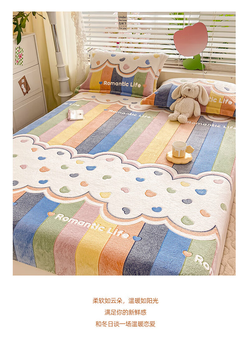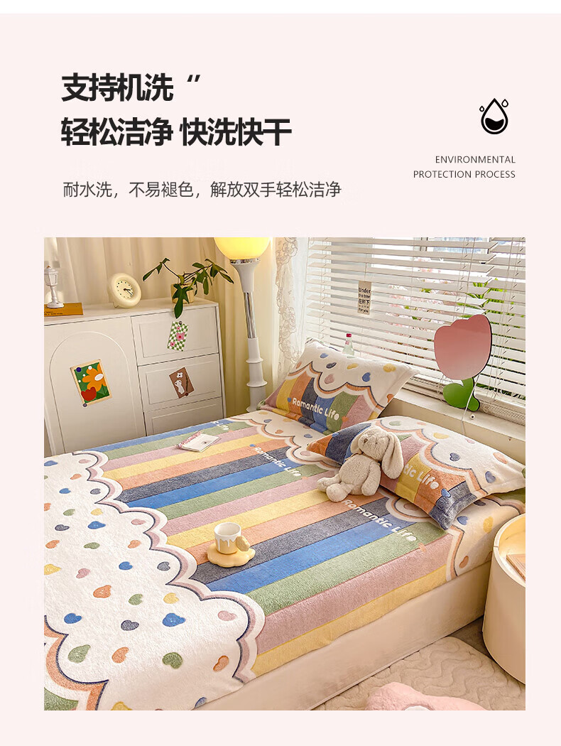 VJE小清新牛奶绒四件套冬季双面绒抗静电床单被套学生宿舍三件套床品 背带兔 三件套1.2m 床单款 -被套150*200cm
