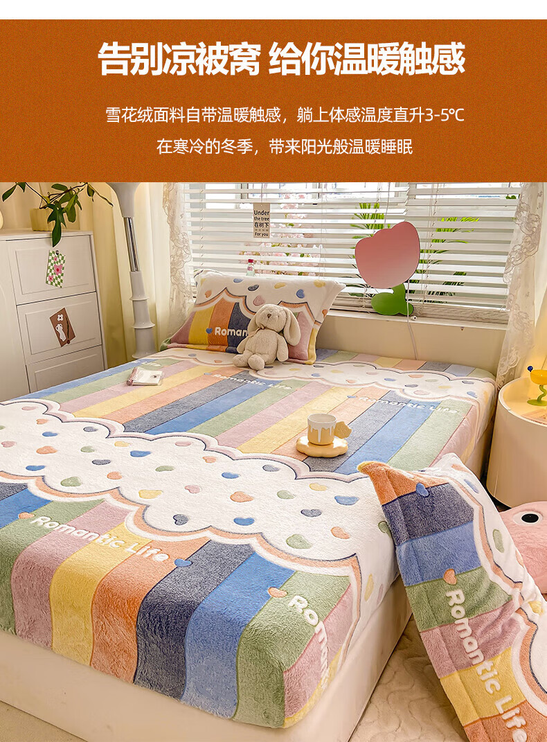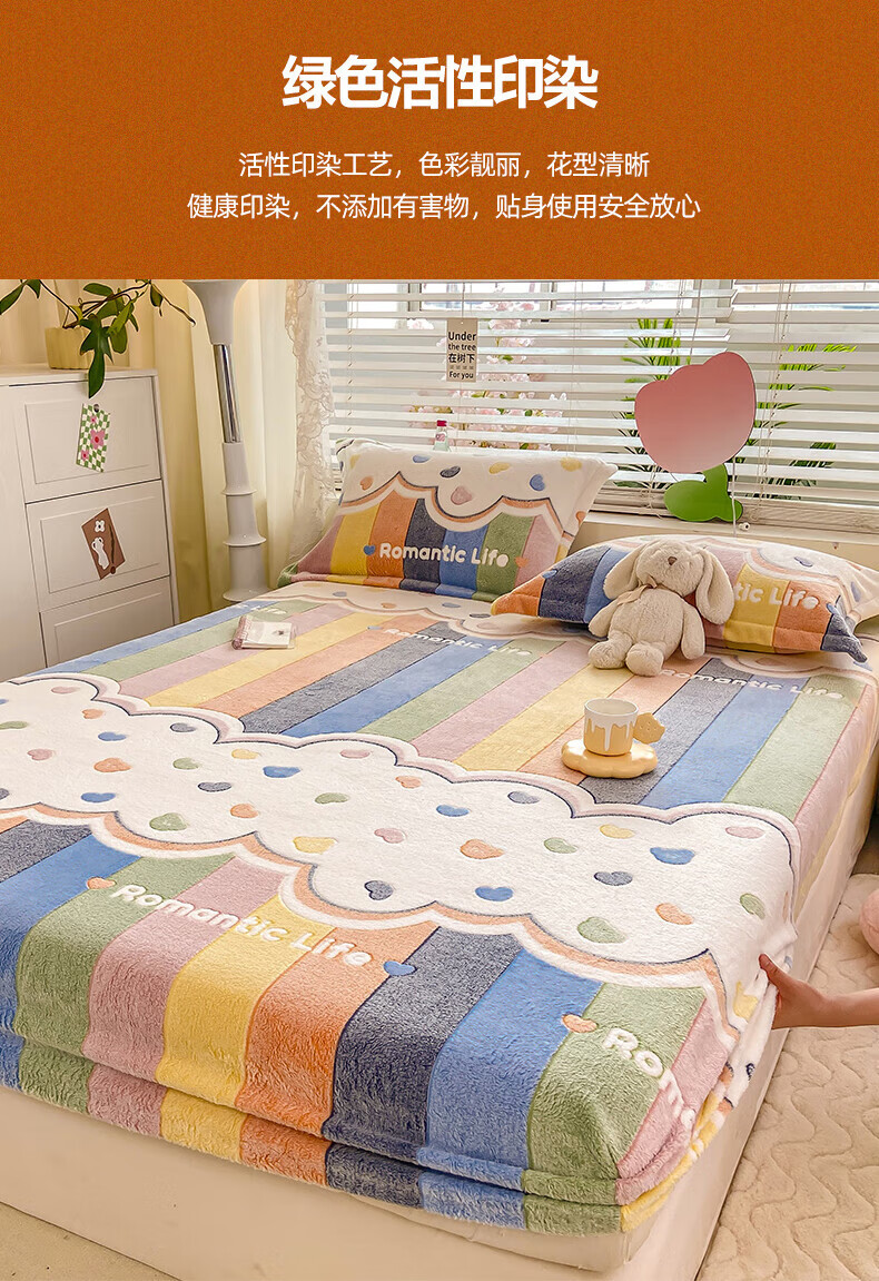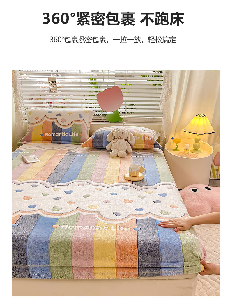 猫人(MiiOW)冬季高克重牛奶绒床笠单件加厚珊瑚绒床罩床垫保护套防尘罩宿舍 小恐龙【加绒加厚】 90cm*200cm 单床笠【360°全包裹】