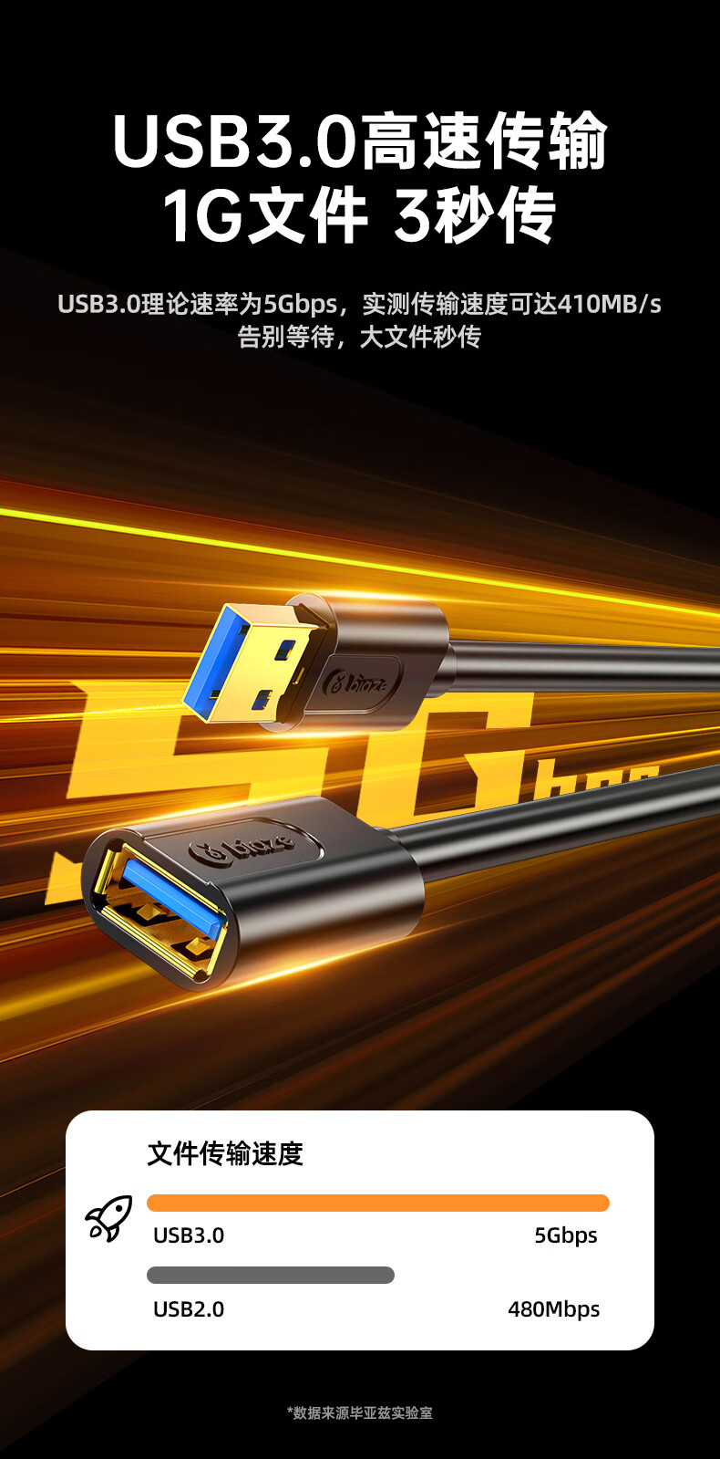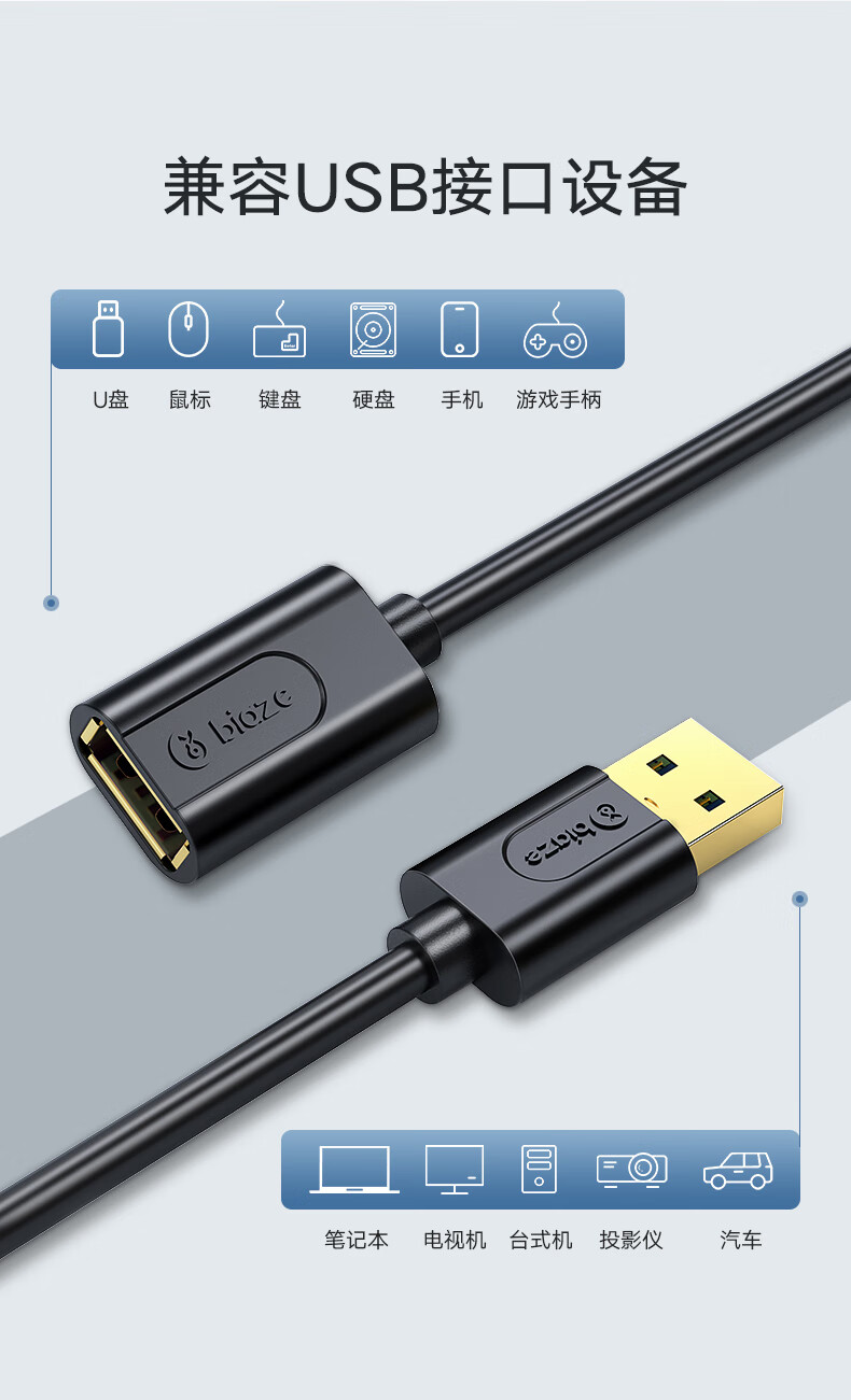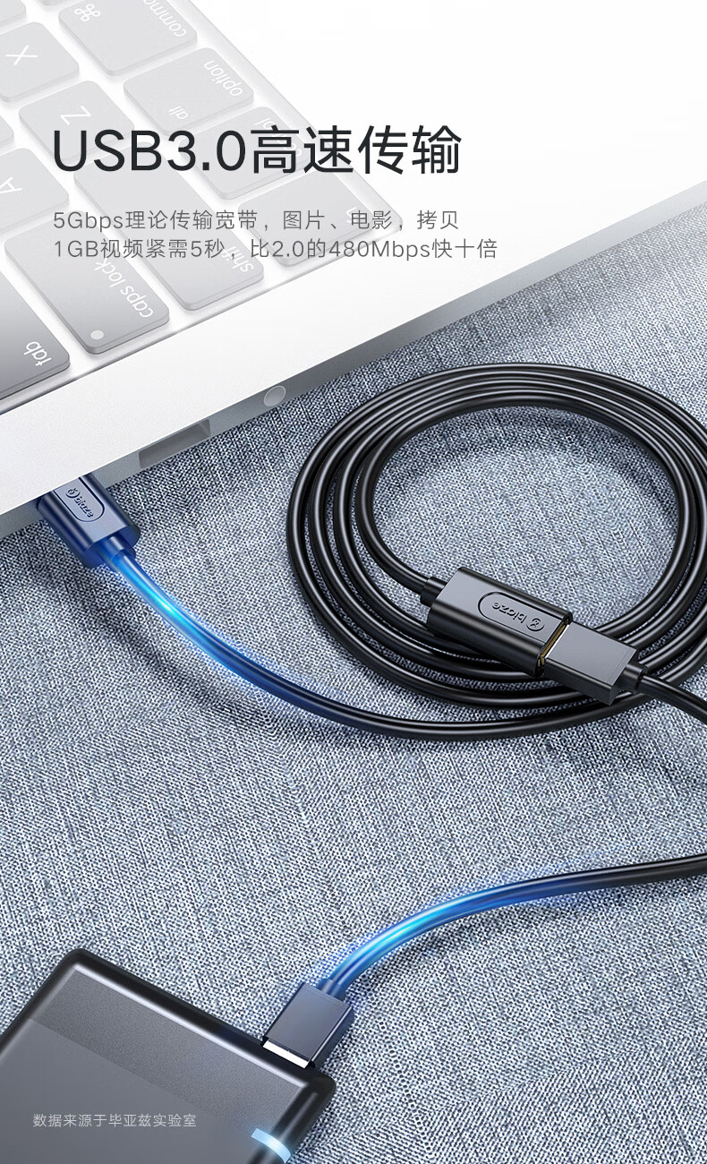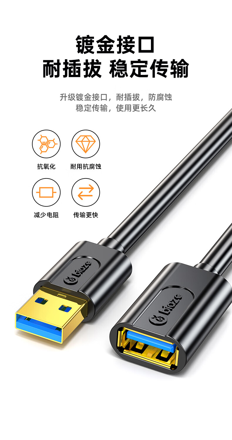毕亚兹 USB3.0延长数据线公对母 1米 高速传输数据连接线 电脑U盘鼠标键盘打印机充电器加长线 黑XL18
