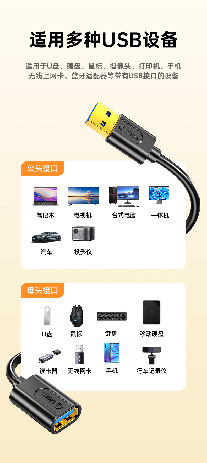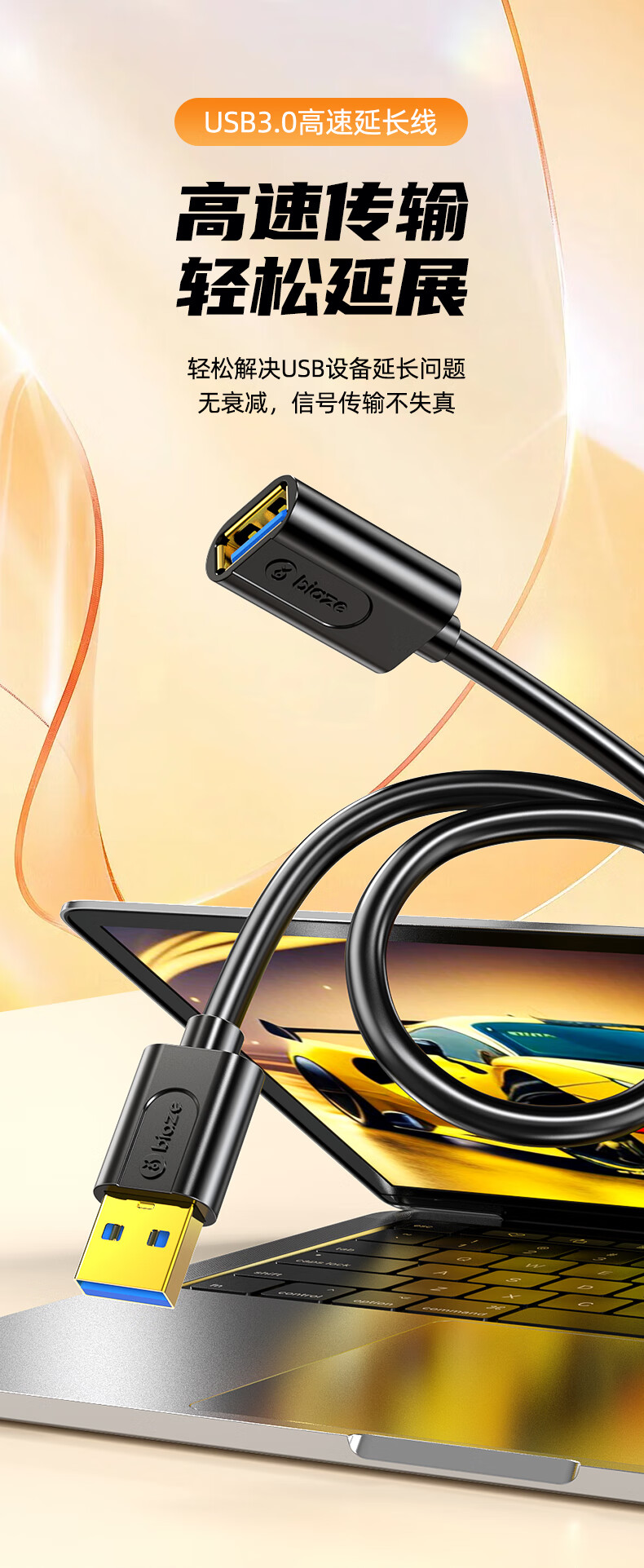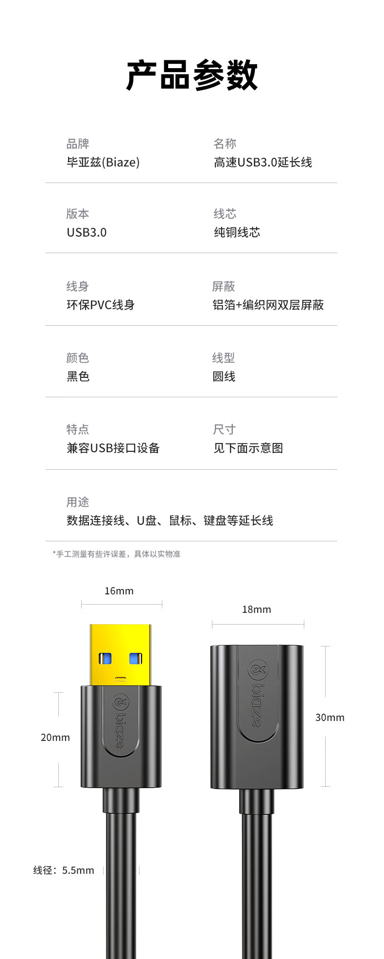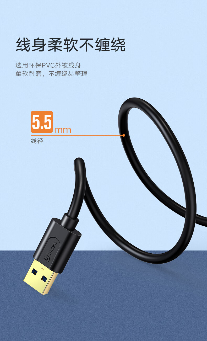 毕亚兹 USB3.0延长数据线公对母 1米 高速传输数据连接线 电脑U盘鼠标键盘打印机充电器加长线 黑XL18