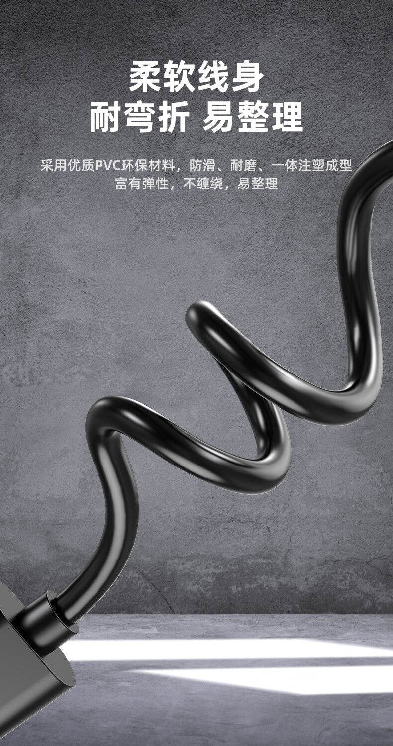 达聚科柔性带线插座转换器插排多孔家用USB充电多功能一转多电源接线板USB充电安全门适用于卧室 八插位总控【1.8米】