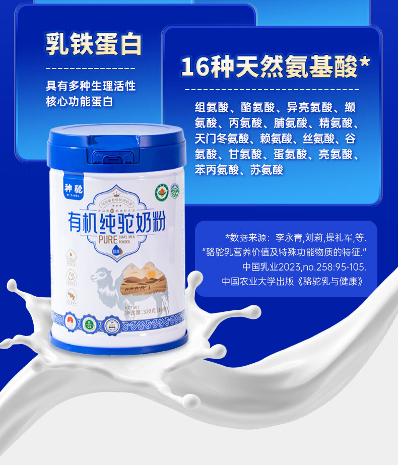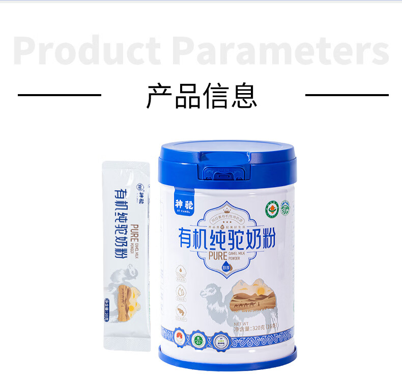 神驼内蒙古阿拉善有机纯骆驼奶粉高钙蛋中老年成人奶粉有机驼奶粉320g 【体验装20g*2条装】