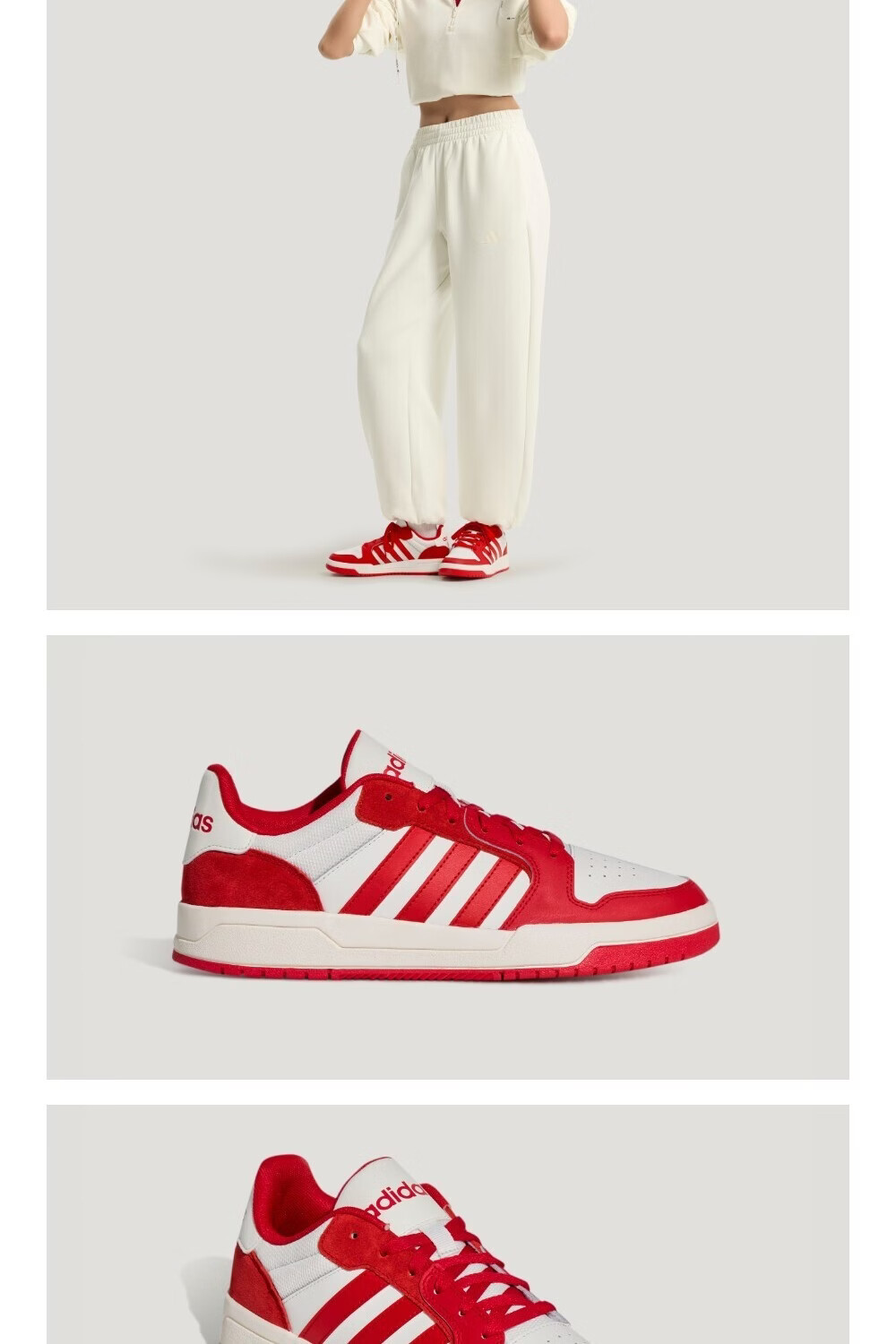 adidas ENTRAP少年感复古篮球风板鞋男女新款阿迪达斯轻运动 亮白/浅猩红 42