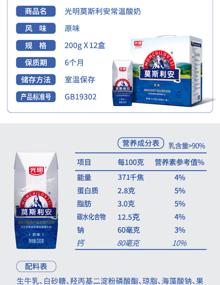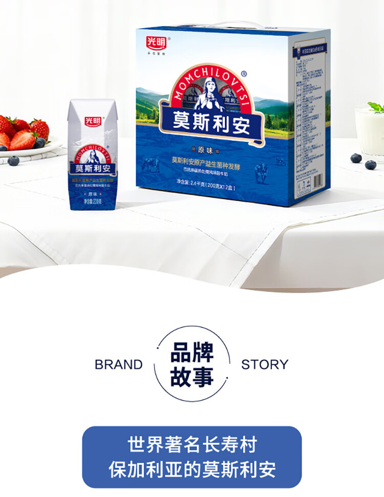 光明【新鲜日期】莫斯利安巴氏杀菌常温原味酸奶200g*12盒 年货礼盒装