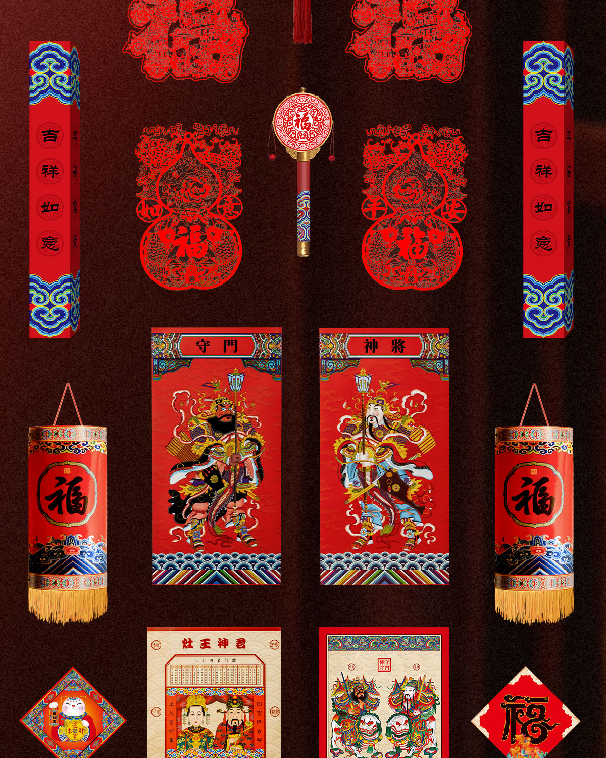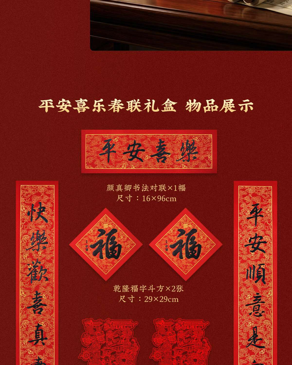 福人福地节庆用品 春联对联 挂件斗方福字 礼盒 平安喜乐春联礼盒