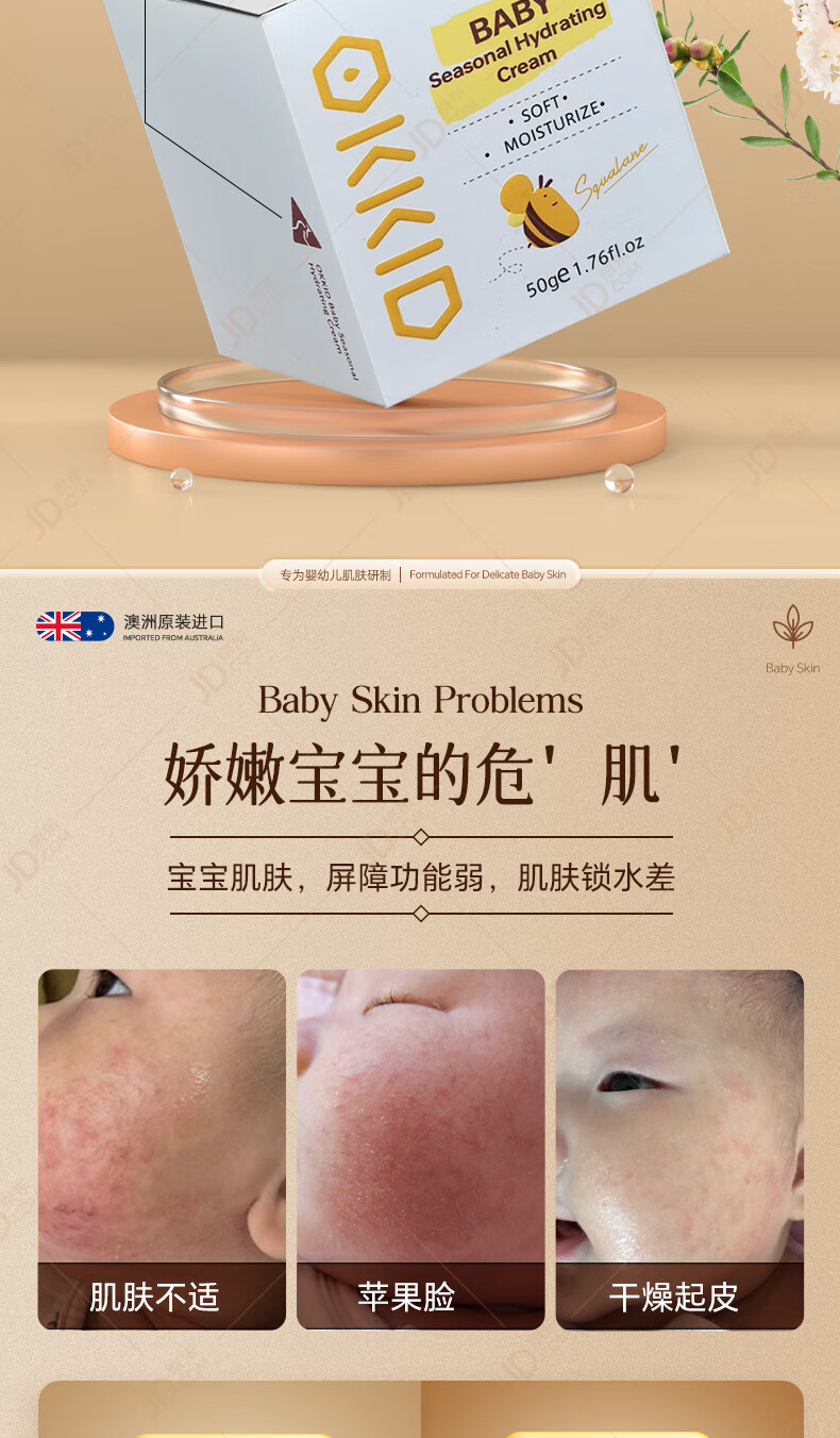 澳可奇OKKID婴儿四季霜儿童宝宝面霜滋润保湿补水擦脸霜婴幼儿童护肤霜 【四季通用/滋润保湿】婴儿四季水润霜50g