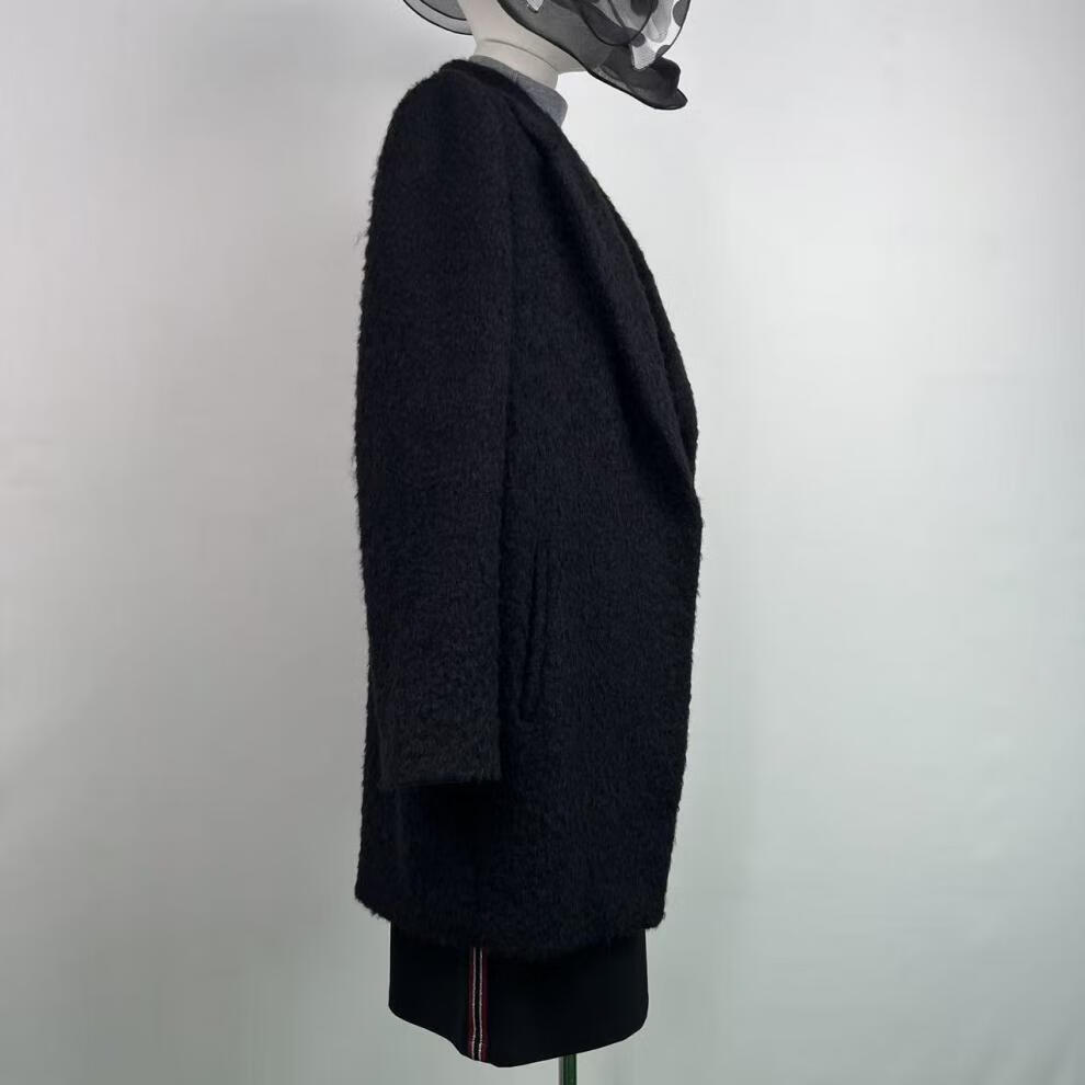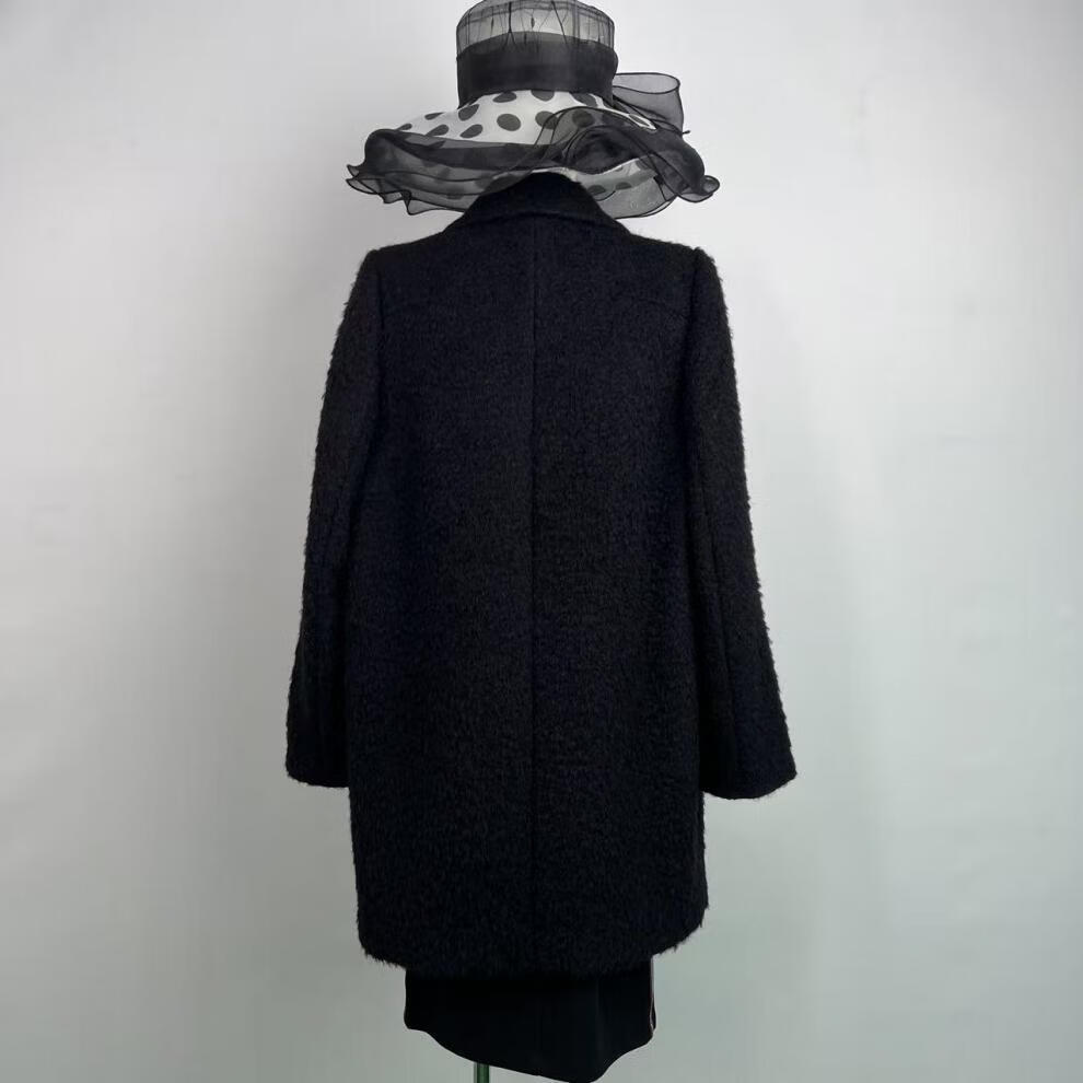 撤柜轻奢金标西装领简约羊毛大衣黑色毛呢羊毛呢大衣时尚 黑色(D113) 2XL