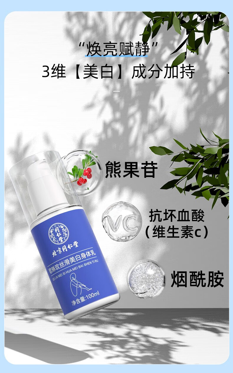 同仁堂维生素e身体乳儿童润肤保湿皮肤干燥72小时香氛男女士全家通用 100ml*3瓶装