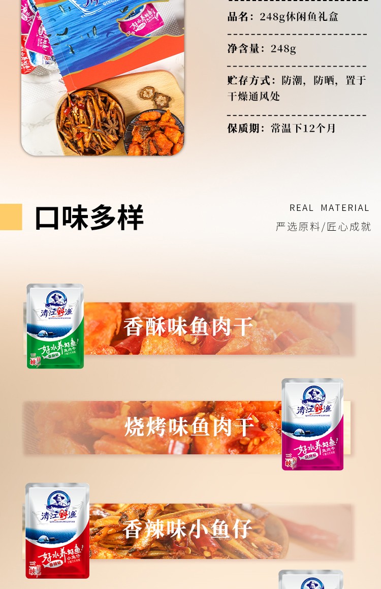 清江野渔(QINGJIANGWILDFISH)鱼肉干 湖北三峡特产鱼块香辣鱼仔办公休闲零食礼盒中秋团购送礼 清江野渔礼盒 248g *2盒