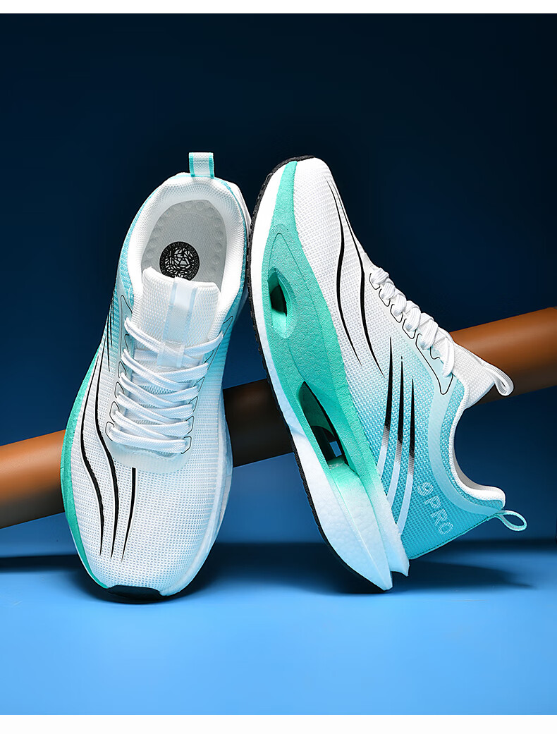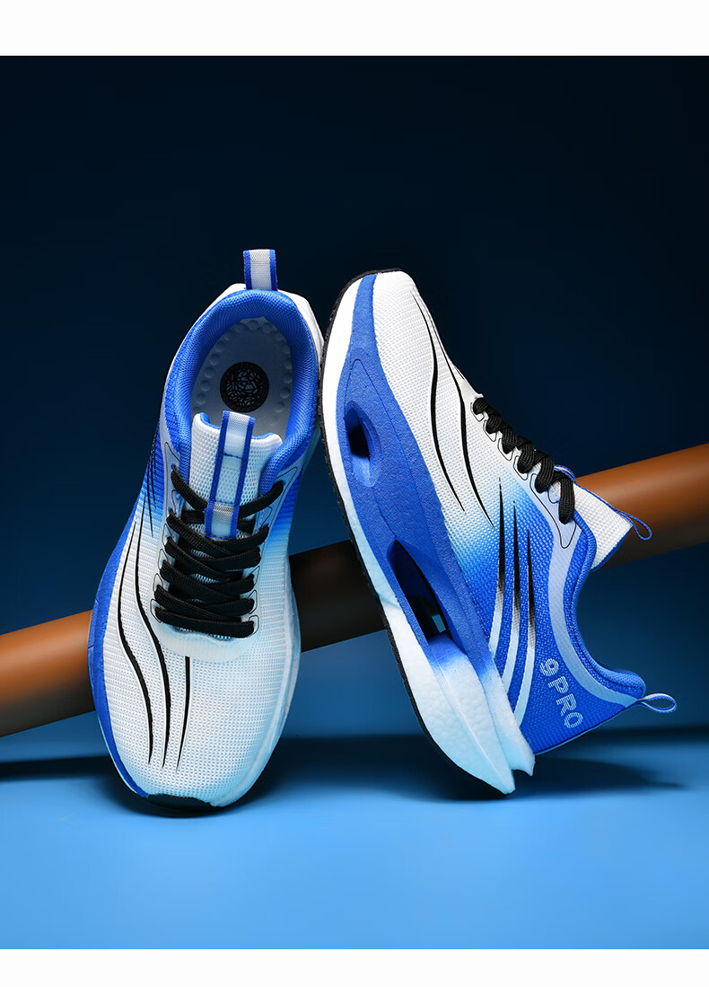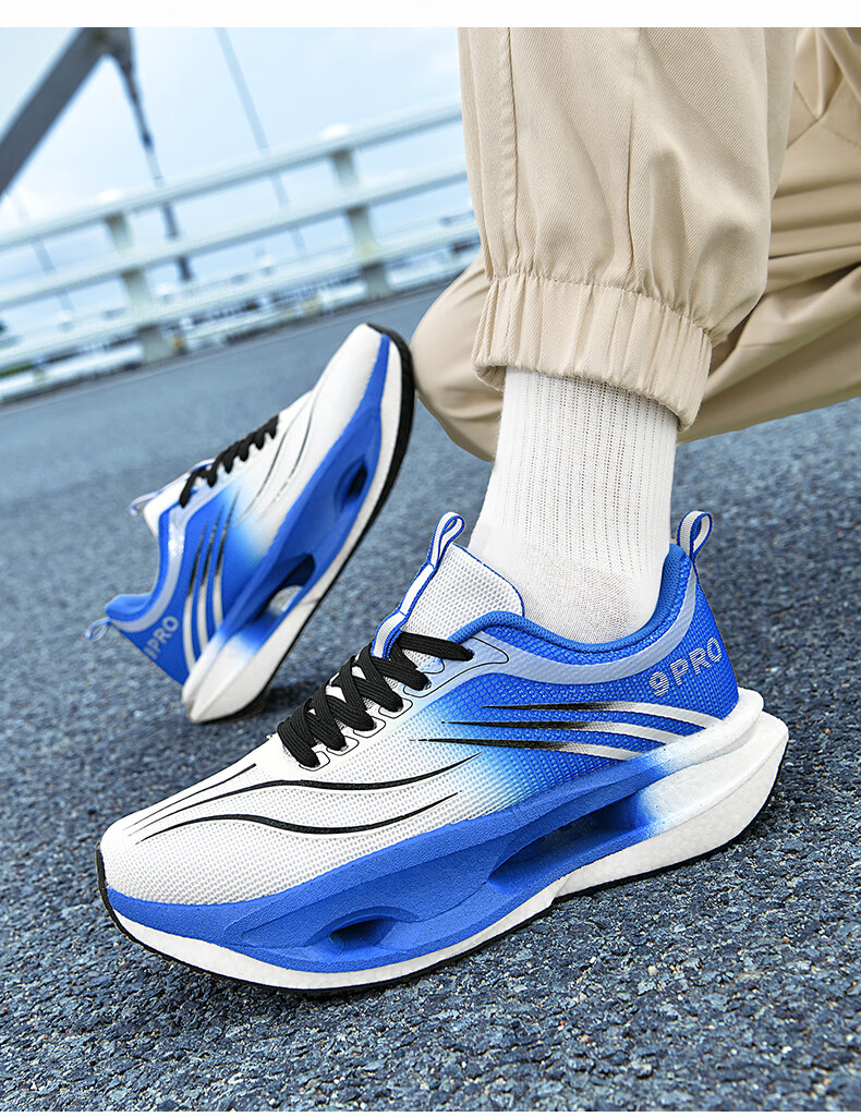 新款男女童碳板减震跑步鞋赤兔爆米花软底双网碳板防滑耐磨运动鞋 白蓝 单层 39 245mm