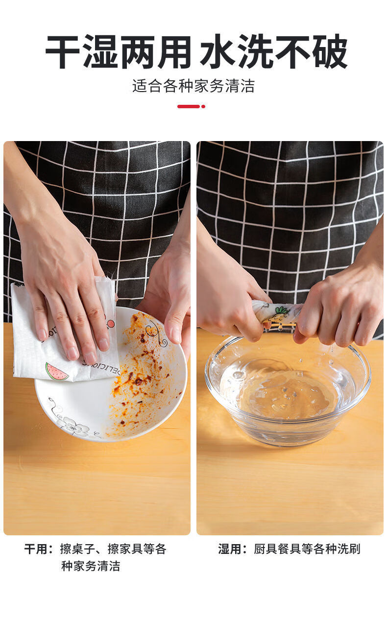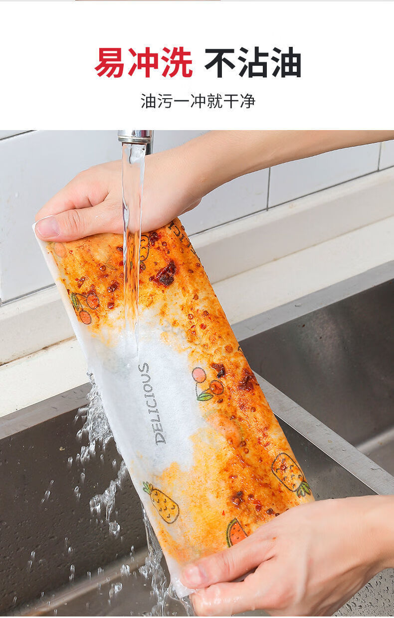 嘉创优品懒人抹布一次性洗碗布不沾油用纸厨房纸巾吸油吸水纸洗碗巾百洁布 【大号印花款】升级加厚 二大卷400片【反复用1200次】