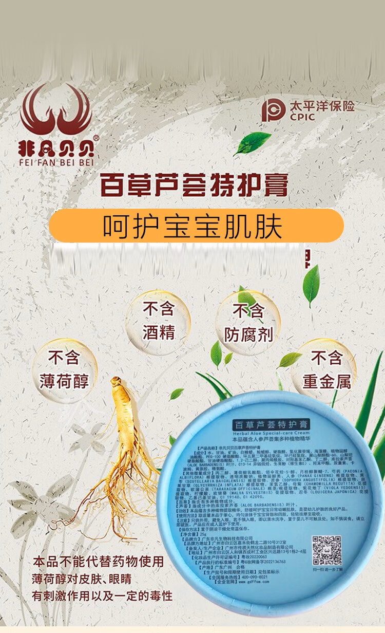 非凡贝贝【药房直售】非凡贝贝特护膏百草芦荟特护膏宝宝护臀膏无芦荟膏 5瓶特护膏+试用装