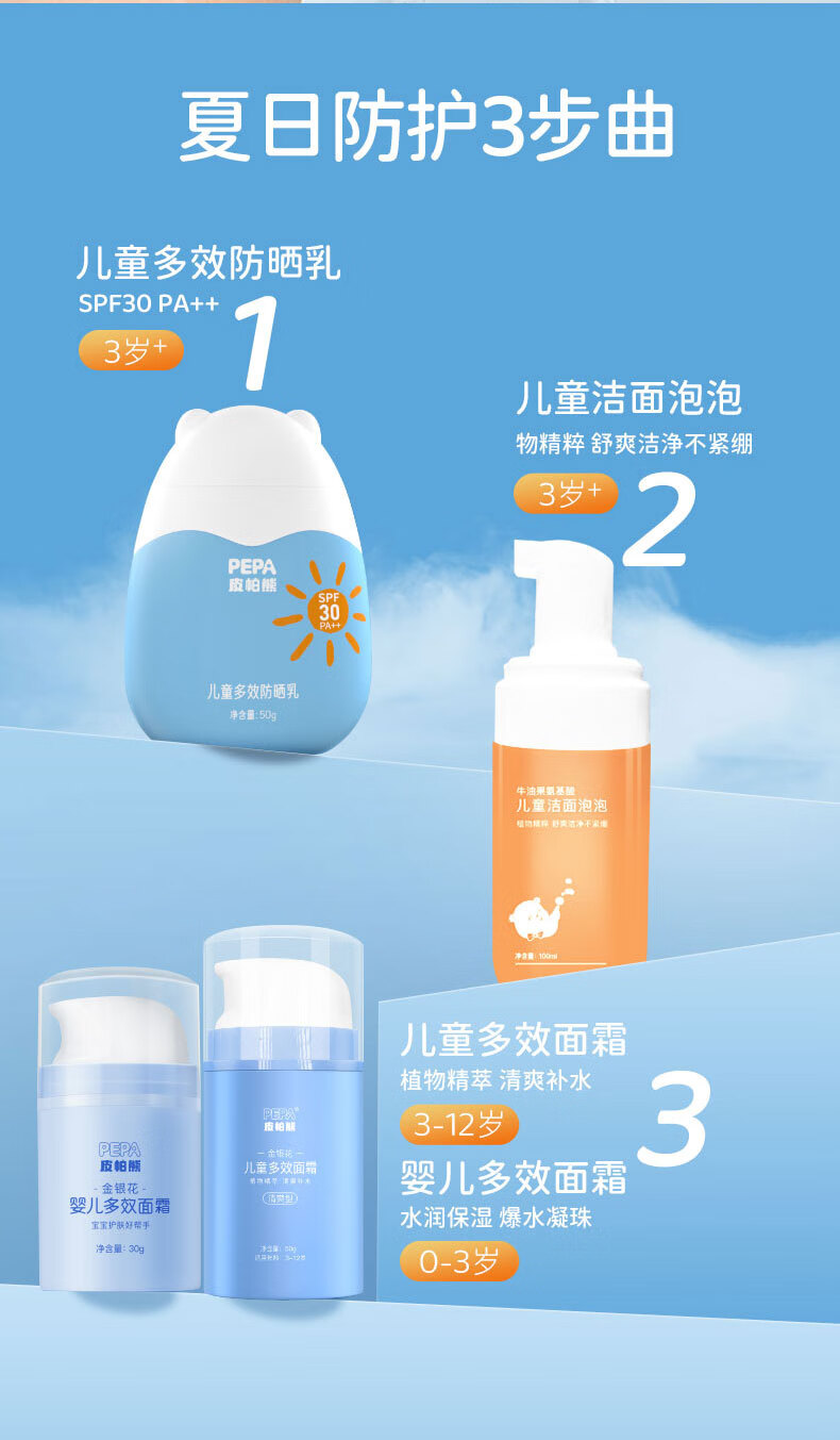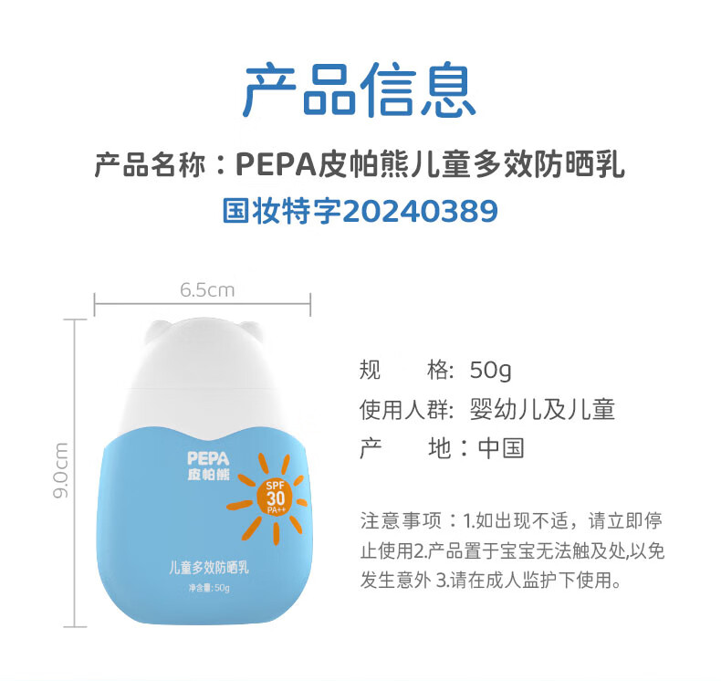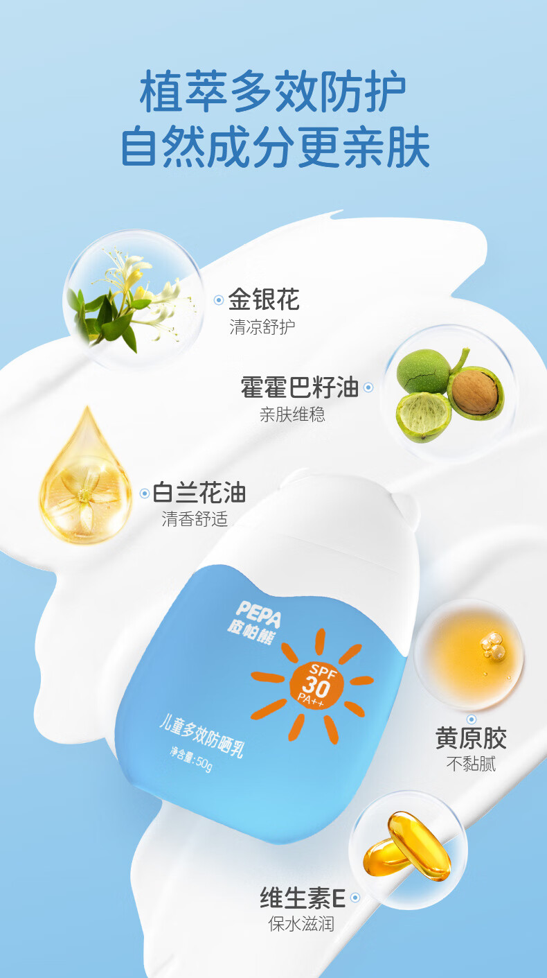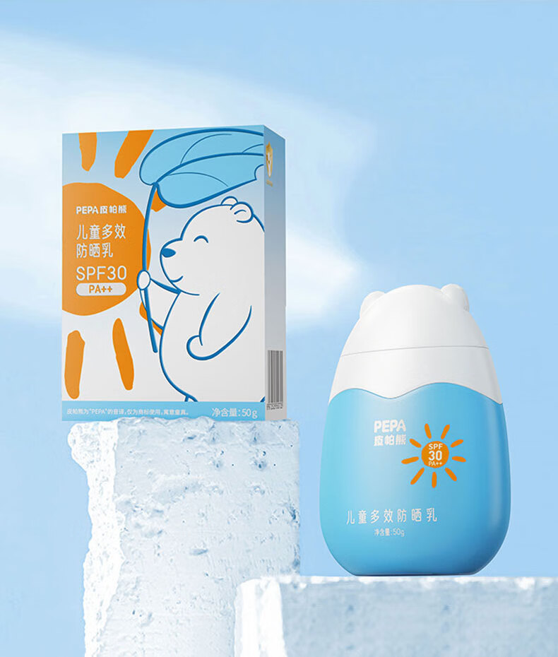 PEPA儿童多效防晒霜SPF30宝宝学生防晒乳户外3重防护隔隔离紫外线50g 儿童防晒